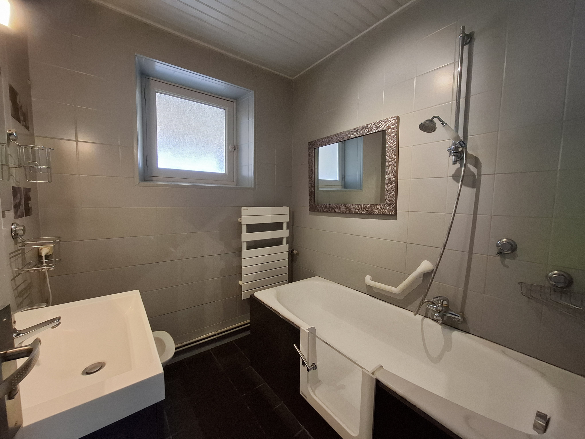 2 chambres et un bureau, un wc séparé, une salle de bains, et divers pièces à définir.