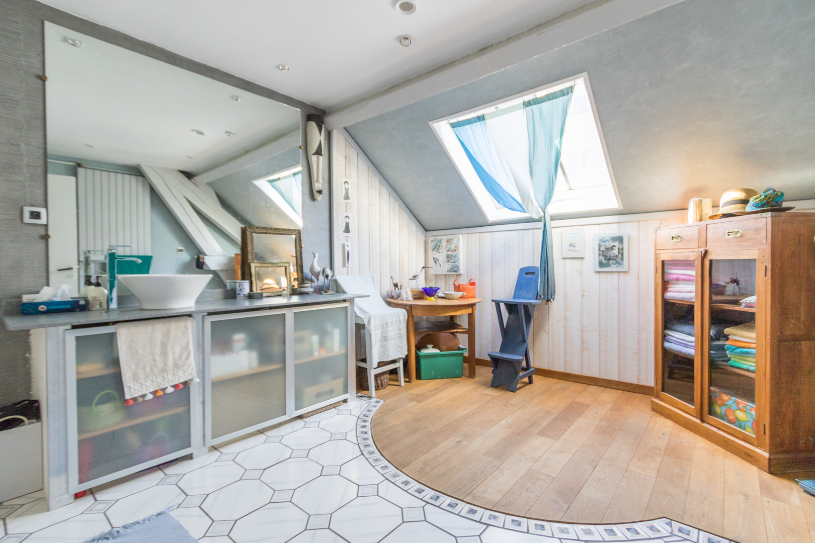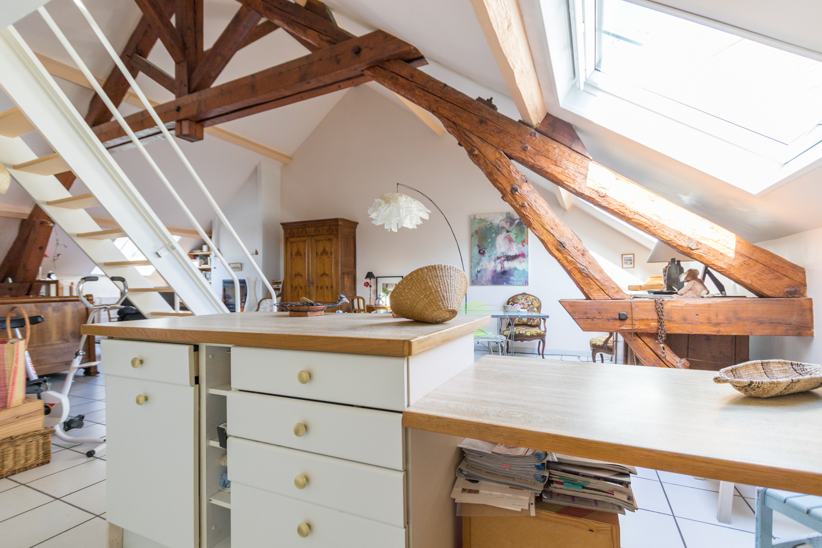 Dans bel immeuble ancien, appartement de 74m2 loi carrez et 100m2 au sol avec beaucoup de cachet. Grande pièce à vivre avec cheminée, deux chambres.