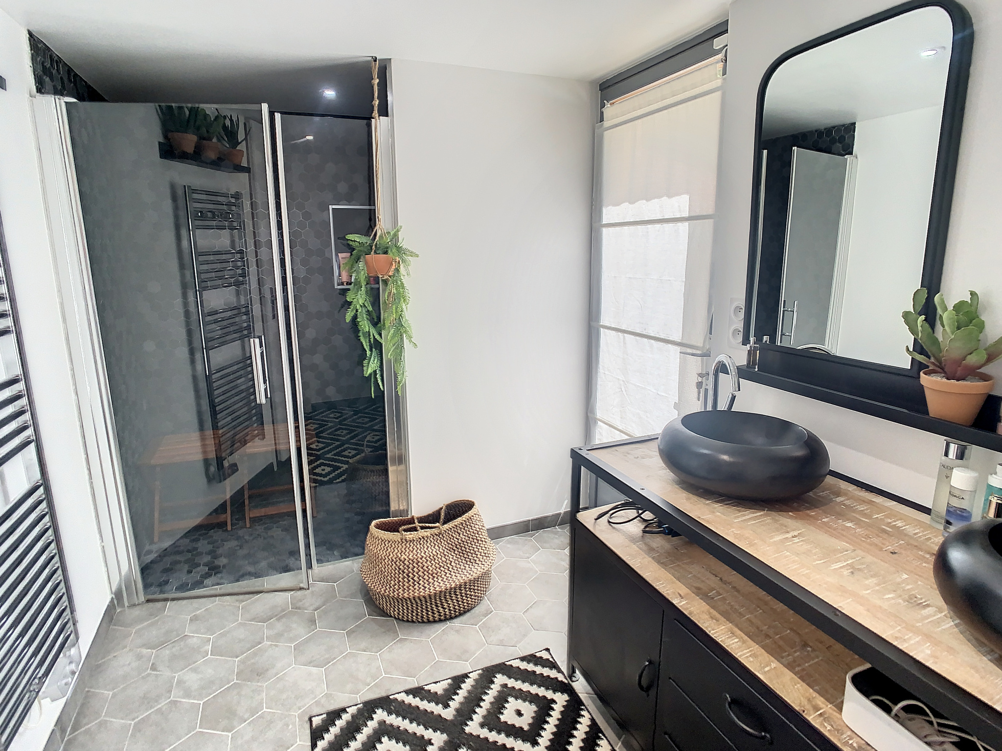 La maison principale est lumineuse, accueillante et conviviale avec des bels espaces de réception (salon-salle à manger-cuisine, tout ouvert) qui bénéficient d'une immense baie vitrée donnant sur les terrasses et la piscine. Une suite parentale complète le rez-de-chaussée avec salle d'eau privative et grands placards. Au 1er étage ; 2 autres chambres et une salle d'eau.