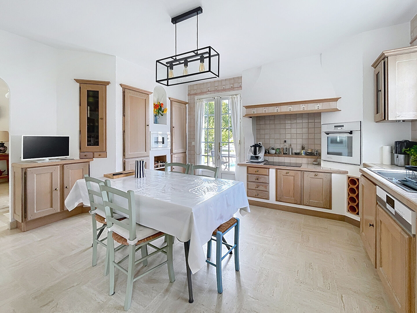 En plain pied, elle offre : un veste séjour lumineux, une cuisine conviviale donnant sur la piscine, trois chambres confortables avec aménagements, salle de bains fonctionnelle avec douche avec rangements.