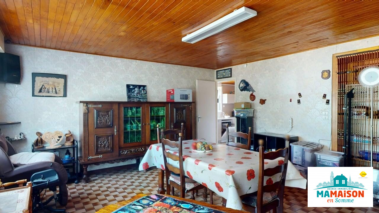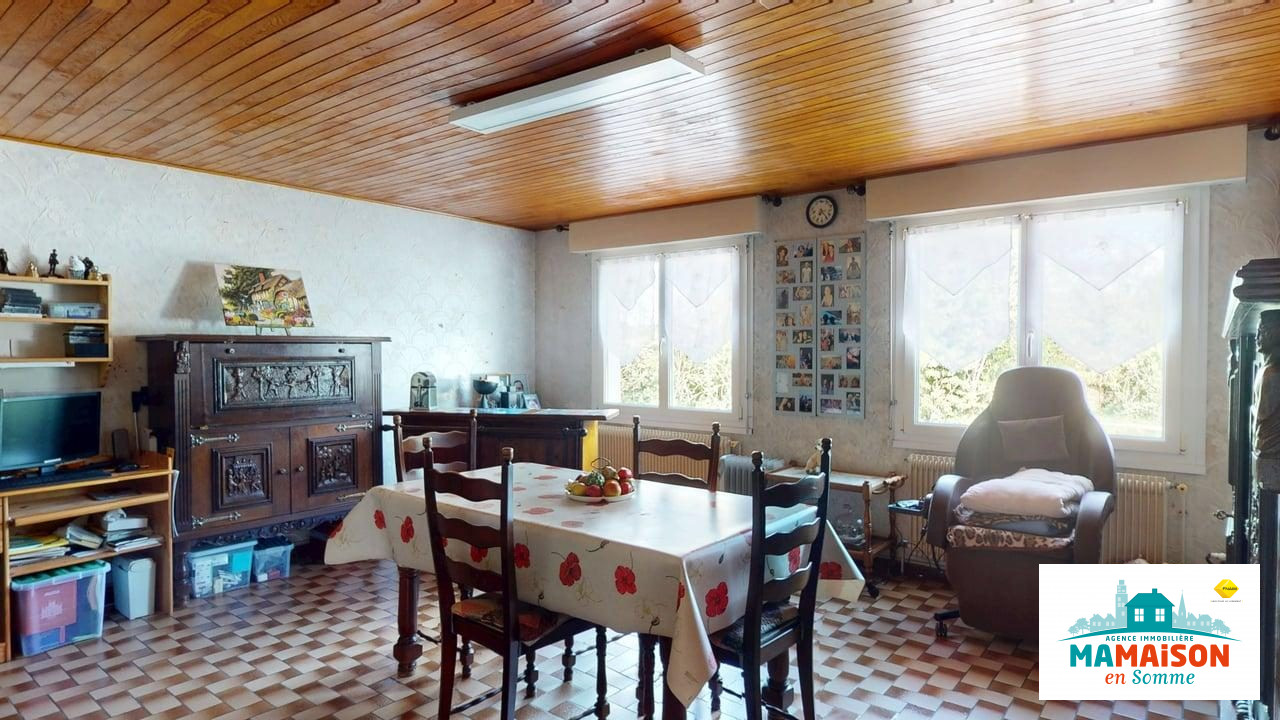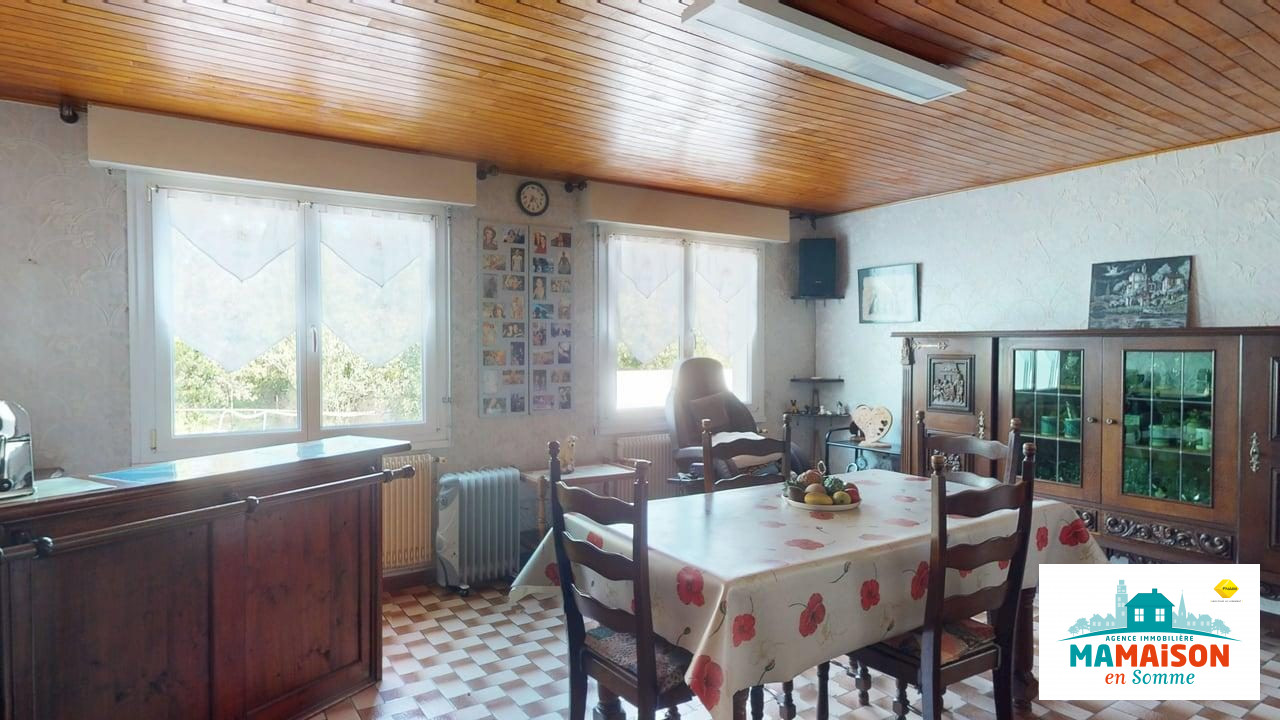A vendre en exclusivité à Buire-sur-l'Ancre, village situé à mi-chemin entre Albert et Corbie, proche d'Airbus à Méaulte, maison individuelle avec, gros avantage, une autonomie de plain-pied, érigée sur un terrain de 891 m2.