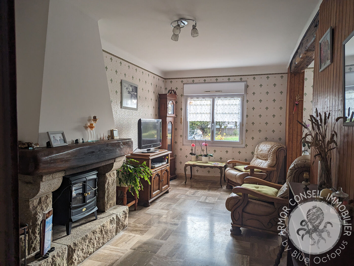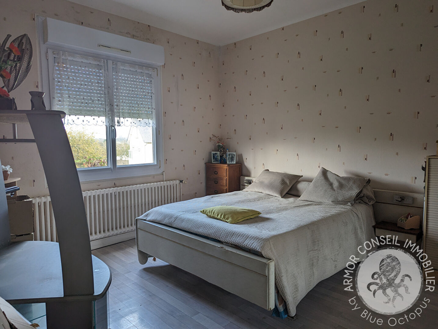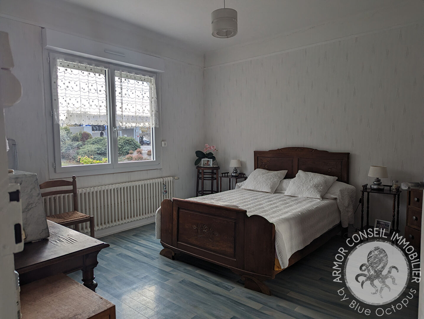ARMOR CONSEIL IMMOBILIER : Vanessa SAMSON vous offre l'opportunité d'acquérir cette maison aux beaux volumes à deux pas de tous commerces et des écoles. Elle vous offre une entrée, une salle à manger suivie d'un salon avec cheminée ouverte, une cuisine aménagée et équipée, 2 chambres et une salle d'eau en rez-de-chaussée. De son étage, vous découvrirez un palier desservant 3 autres chambres. Un sous-sol avec arrière-cuisine, coin atelier et garage. Ce bien sur un terrain entièrement clos et constructible de plus de 1400 M2. A VISITER SANS TARDER!!!