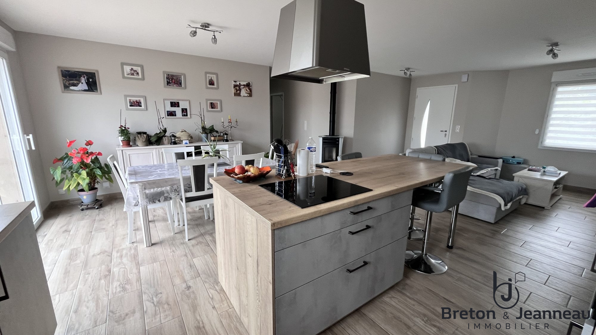 Découvrez cette magnifique maison plain-pied de 96 m², construite en 2022, alliant modernité et confort. Son espace de vie de 44 m² baigné de lumière naturelle est parfait pour les moments en famille ou entre amis : cuisine aménagée équipée ouverte sur un salon séjour avec un poêle à granulés.