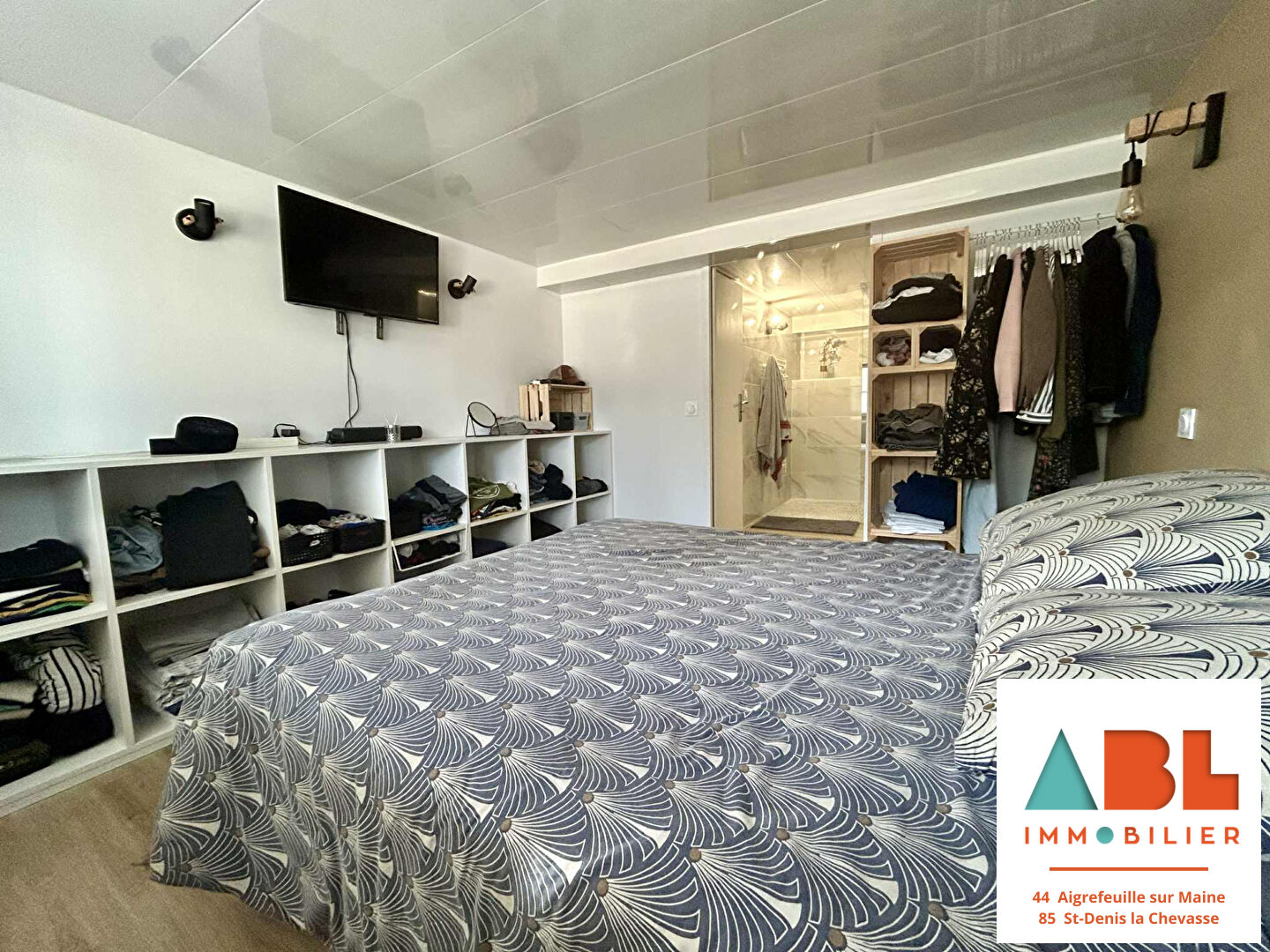 Elle est composée d'un hall d'entrée avec placard, un WC indépendant, une première chambre avec placard (10.21m²), une belle pièce de vie avec un espace cuisine aménagée et équipée de 40m².