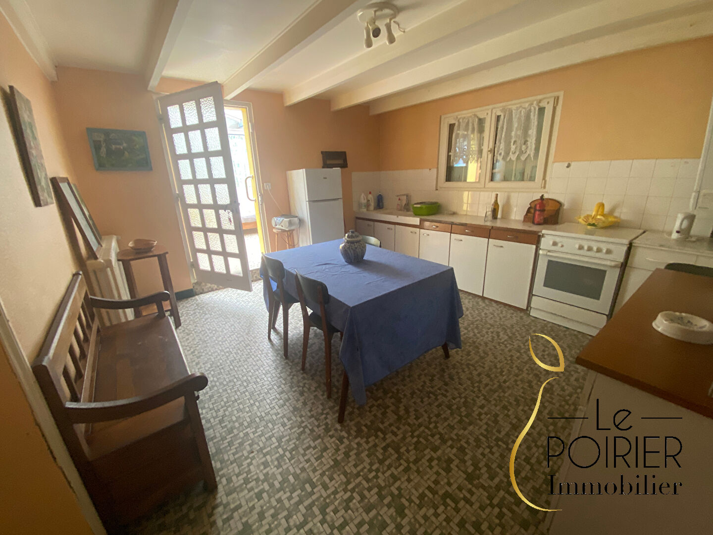 Une arrière-cuisine spacieuse prolongée par une véranda conviviale.
