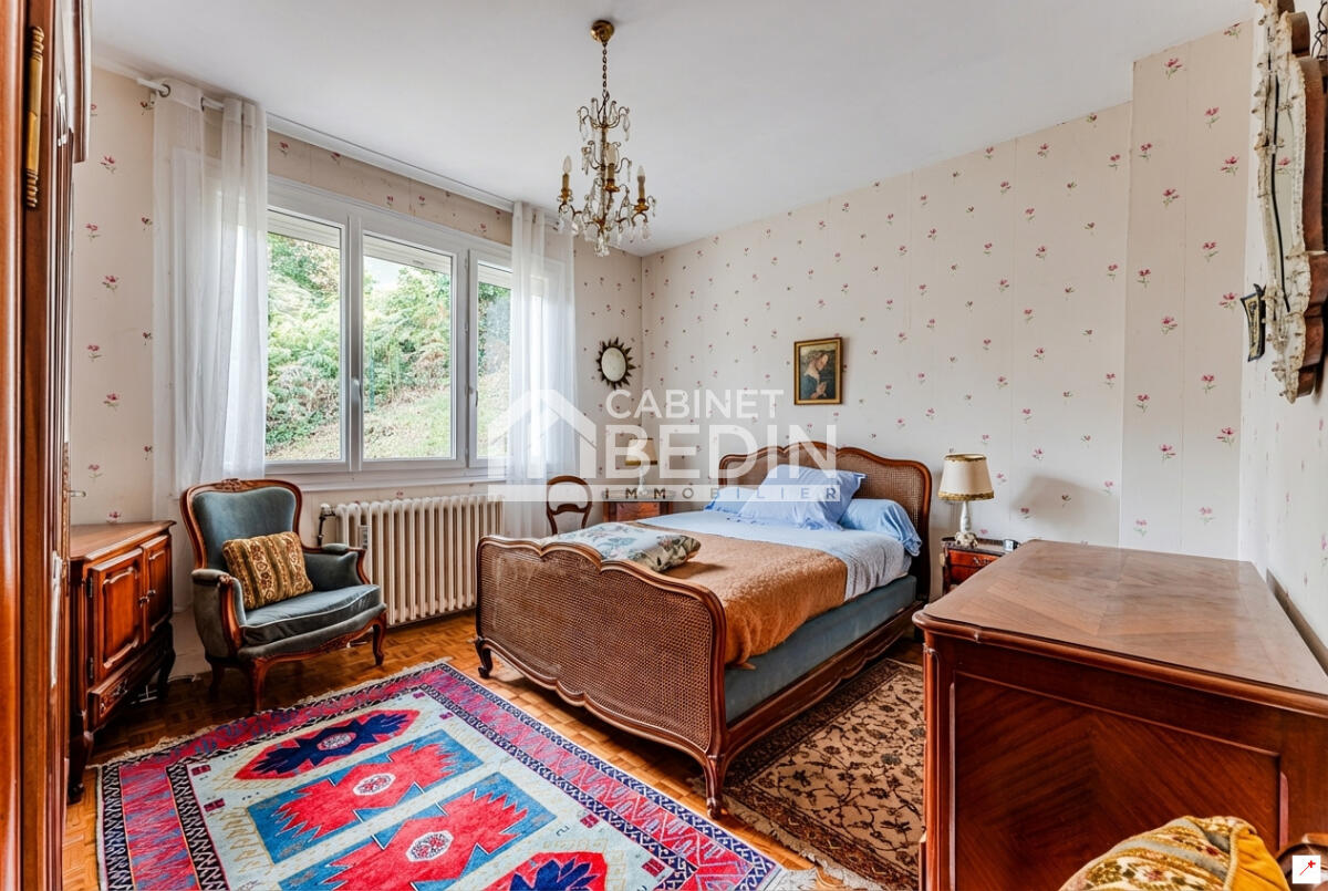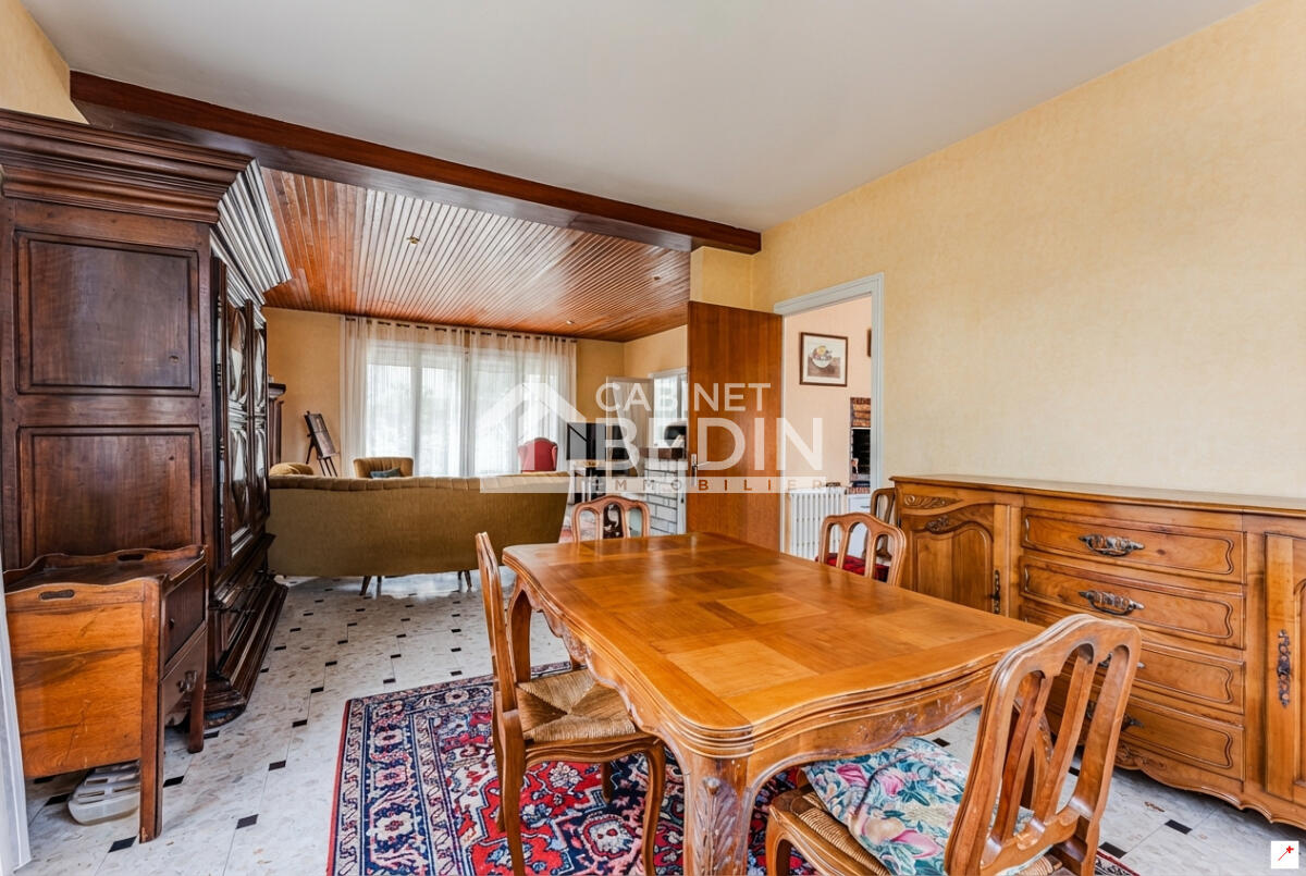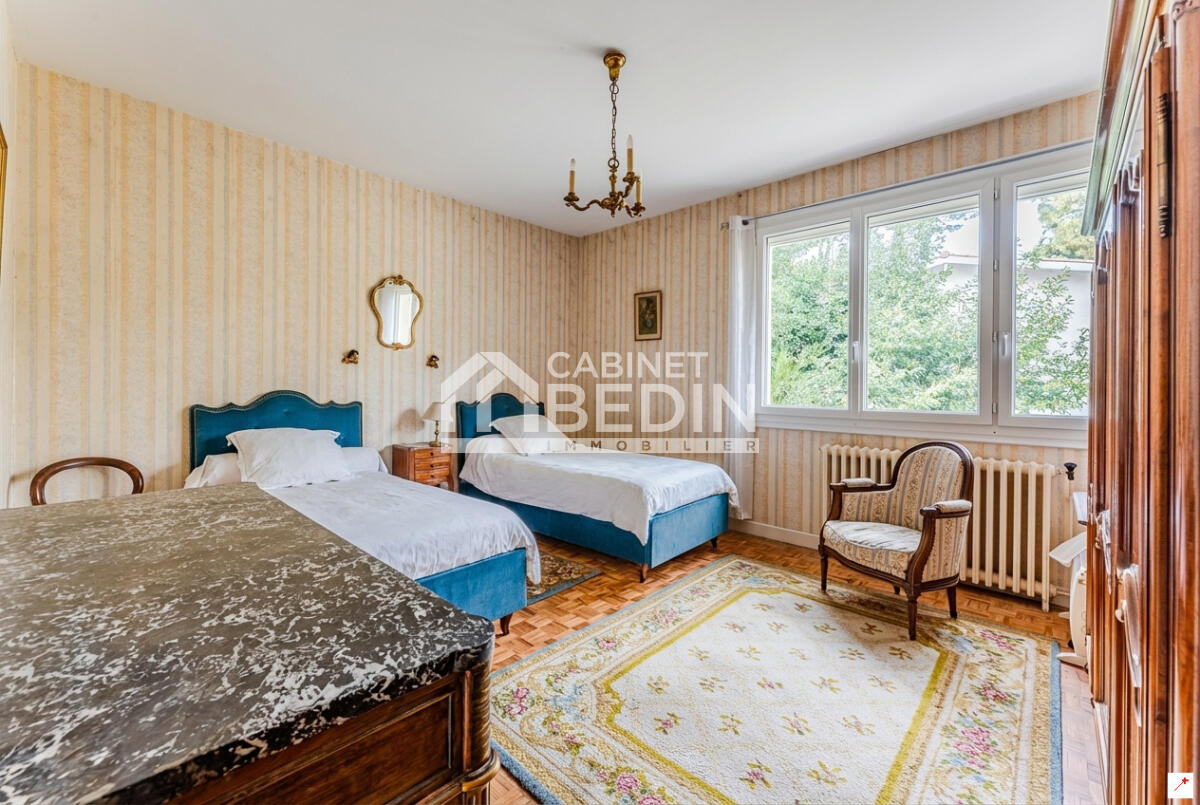 ARCACHON - VILLA PLAGE PEREIRE. La magnifique plage Péreire est à deux pas de cette villa des années 60 offrant une belle capacité d'accueil avec ses 5 chambres réparties sur 2 niveaux. Le rez-de-jardin est composé d'un séjour/salon, de 2 chambres, d'une cuisine équipée ouvrant sur le jardin et d'une salle d'eau. À l'étage supérieur, vous disposez de 3 grandes chambres, d'une pièce de vie d'environ 40 m2 bénéficiant d'une triple exposition, d'une cuisine équipée et d'une salle de bains mixte. Une grande terrasse couverte permet de profiter de l'environnement calme et boisé du quartier. Buanderie, chaufferie et grande cave/atelier complètent ses prestations. Certains visuels ont été optimisés avec IA pour une meilleure lisibilité et mise en valeur du bien. . Les informations sur les risques auxquels ce bien est exposé sont disponibles sur le site Géorisques : www. georisques. gouv. fr. Montant estimé des dépenses annuelles d?énergie pour un usage standard : entre 4174 et 5648 Euros/an (année de référence 2023)