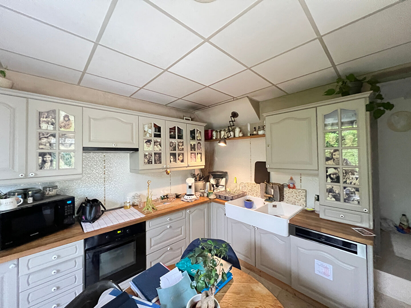 Sur les hauteurs de la ville, belle maison ancienne de charme en excellent état sur plus de 1.400m2 de terrain bien arborée, entrée dans une jolie cuisine aménagée, séjour et salon tomette et cheminée, agréable terrasse intime, dans la verdure, poutres, A l'étage, pallier, 3 chambres, salle de bains.