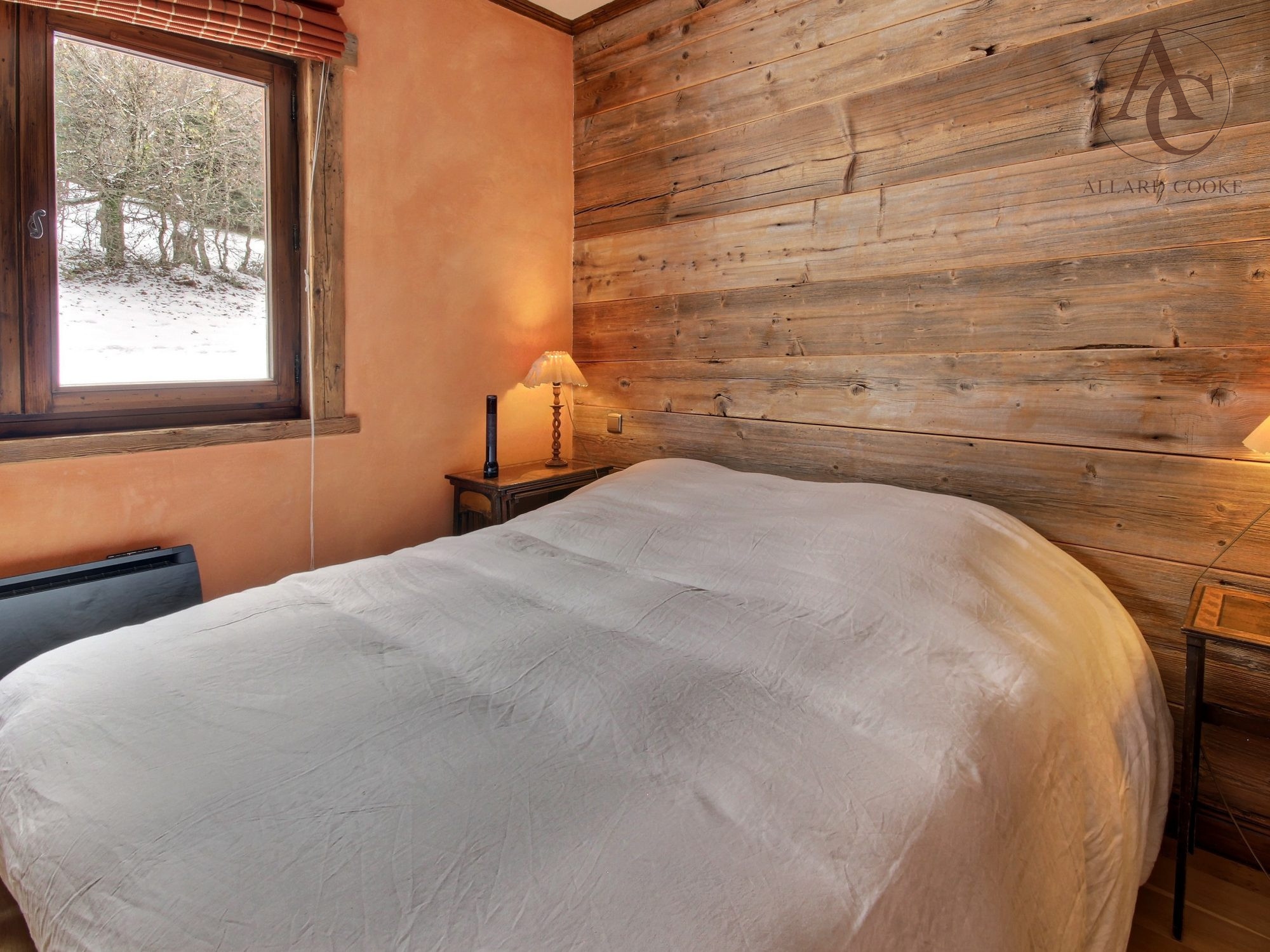 Vous apprécierez certainement d'être proche du centre du village accessible en quelques minutes à pieds tout en étant dans un environnement calme, cet appartement en rez de jardin, d'un chalet en vieux bois situé au bout d'une impasse sans nuisance, grand séjour ouvrant sur une grande terrasse donnant sur jardin, cuisine américaine équipée très lumineuse, chambre avec salle de douches et w-c, chambre-bureau, deux chambres-cabine, vestiaire avec coin buanderie.