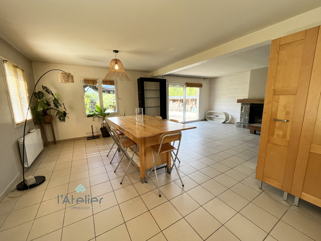 La maison principale Orientée plein sud, la grande pièce de vie profite d'une luminosité généreuse et offre un cadre convivial avec son salon, sa salle à manger et sa cuisine ouverte moderne et équipée. Le charme opère immédiatement grâce à sa cheminée traditionnelle et à son poêle à bois : deux sources de chaleur qui invitent autant à la convivialité qu'à la détente.
