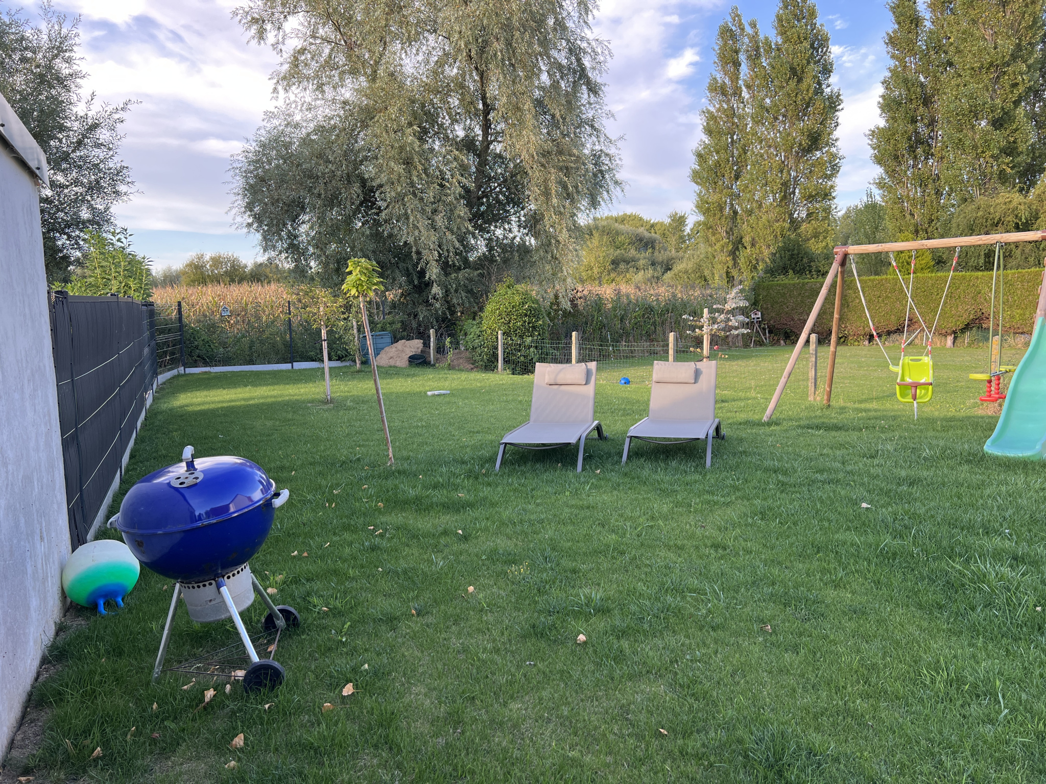 Un garage, une terrasse, un jardin clos sur environ 750m2