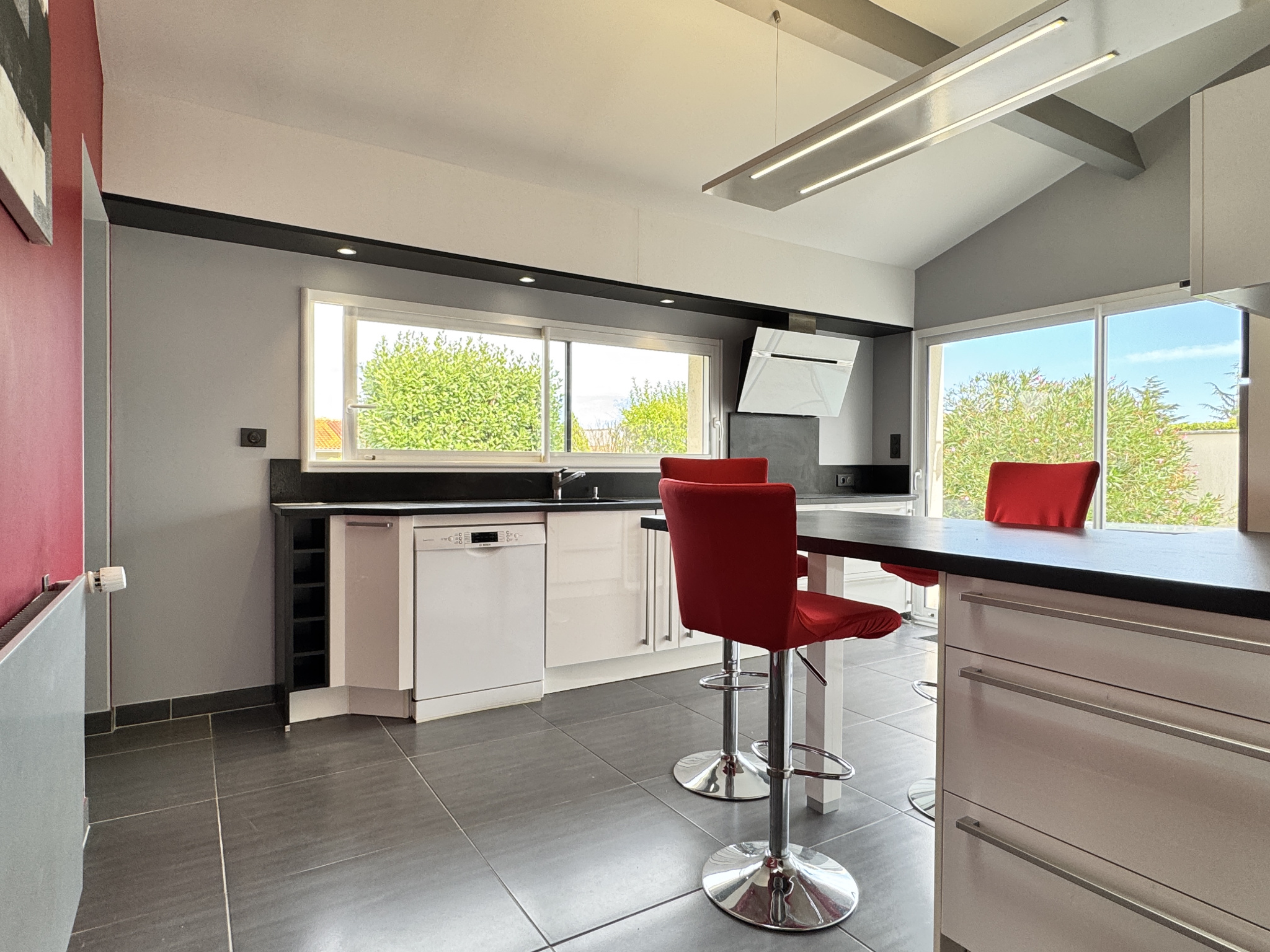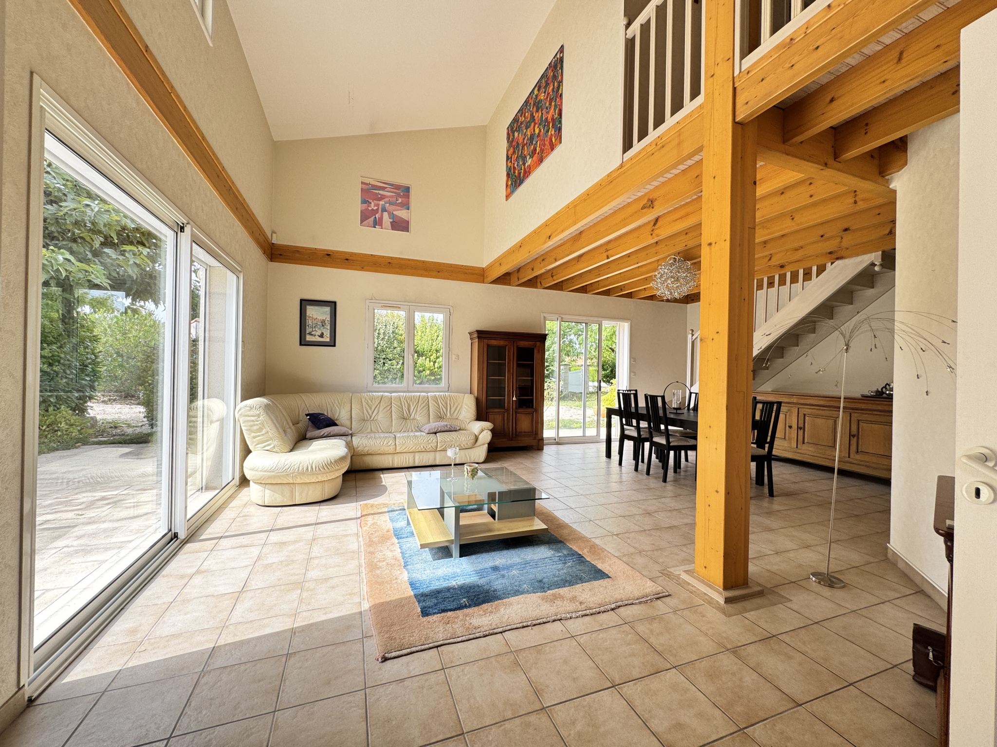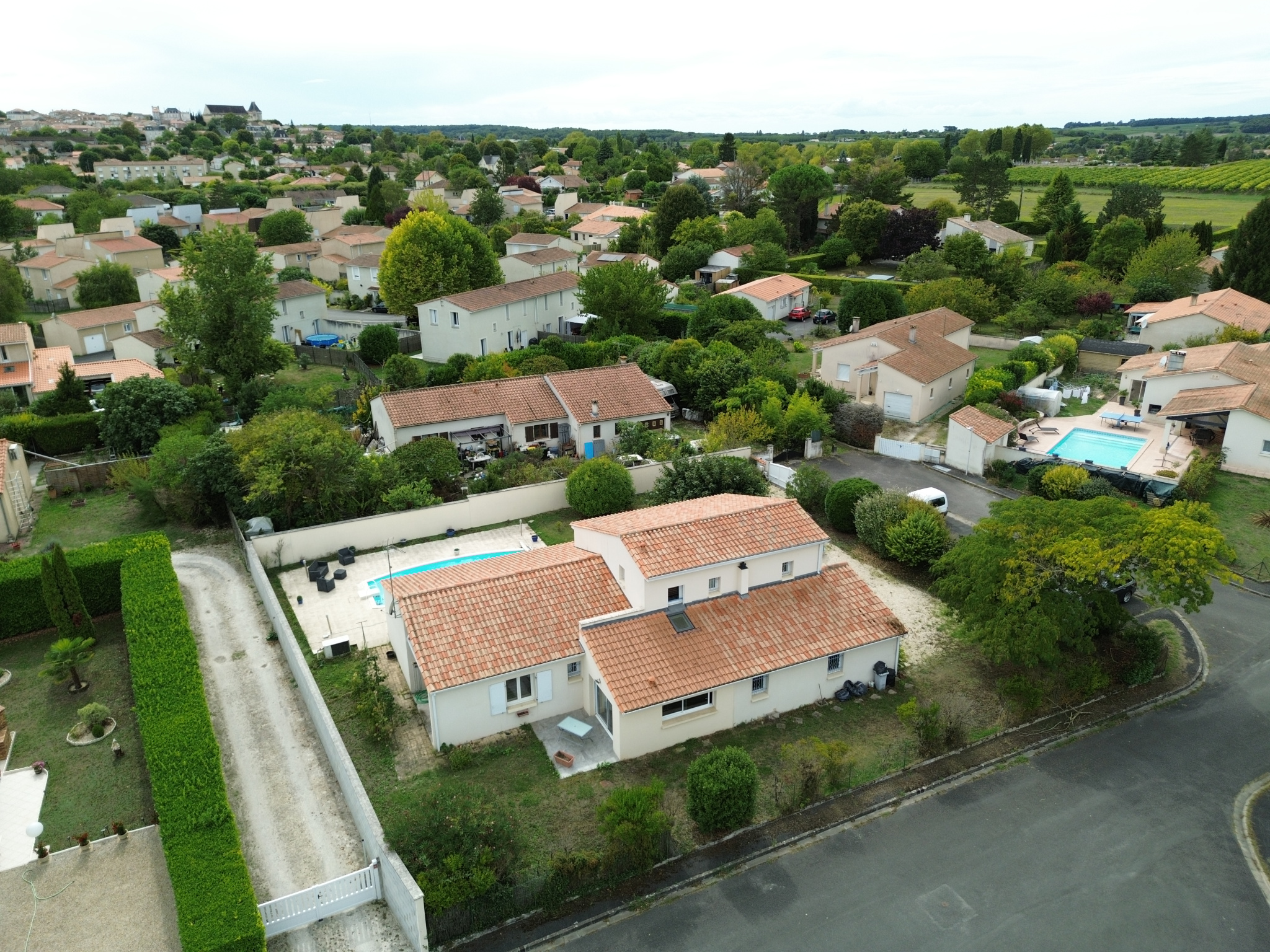 BARBEZIEUX (16) - Dans une impasse d'un quartier calme, proche du centre, venez découvrir cette charmante bâtisse de 179 m2 habitables édifiée sur un terrain clos avec piscine. Les lieux ont été pensés pour vivre en famille avec de nombreuses chambres et des parties nuits bien séparées. Au rez-de-chaussée, entrée traversante, beau séjour lumineux de 40 m2 orienté sud-ouest avec mezzanine. Cuisine équipée, moderne, fonctionnelle avec baie sur terrasse au Nord-Est. Cellier de 7 m2 en enfilade qui donne accès au garage avec cave. L'espace nuit se compose de trois chambres, dont une avec salle d'eau privative, salle de bains, WC et dressing. À l'étage mezzanine de 10 m2, deux autres chambres et un WC avec lavabo. Sur la façade la terrasse entoure la piscine chauffée et profite d'un store banne. Jardin arboré et clos de murs en bonne partie sans vis à vis. Situation et cadre très agréable.