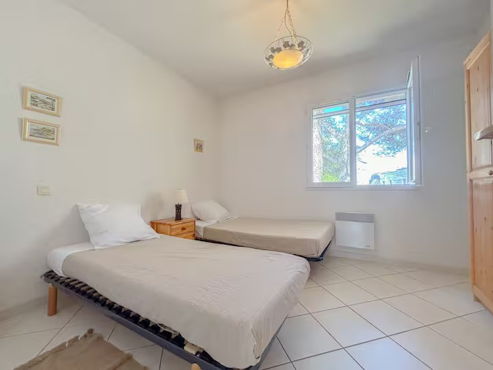 La seconde chambre est équipée avec deux lits simples, parfaite pour enfants ou amis