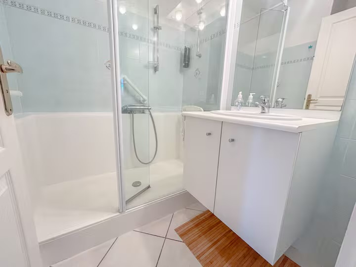 Une salle d'eau moderne avec grande douche à l'italienne et meuble double vasque