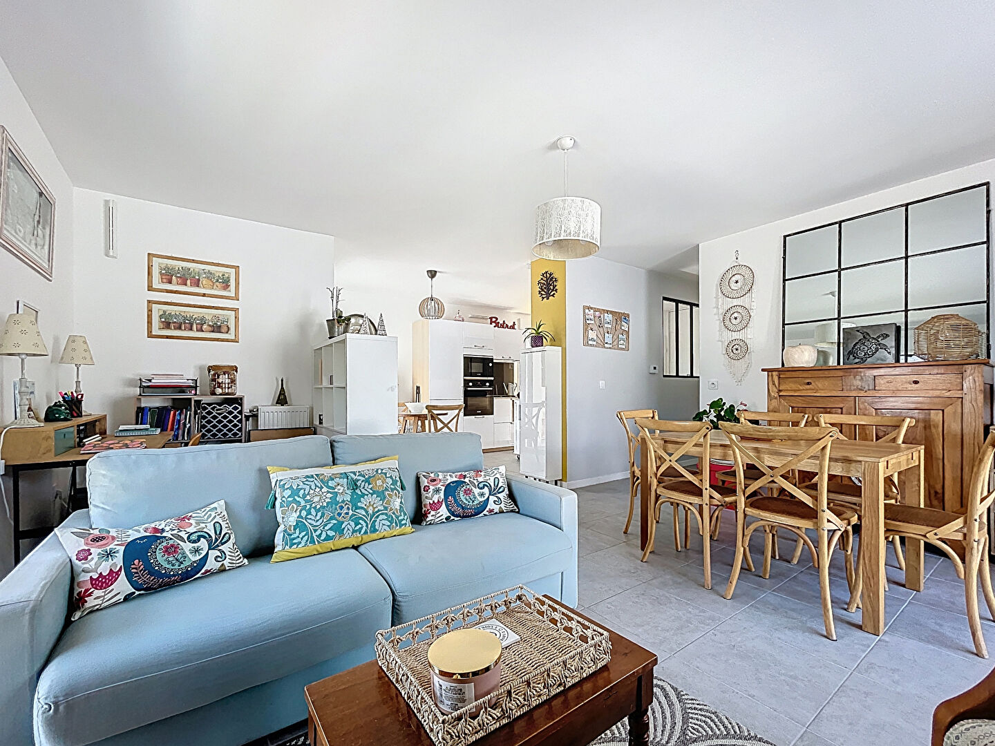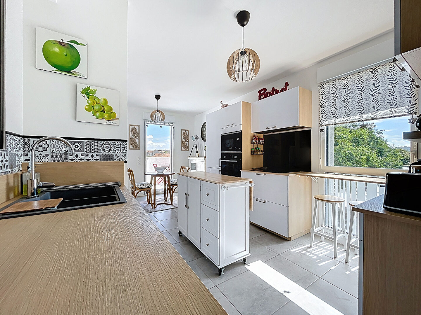 - Une cuisine entièrement aménagée et équipée, ouverte sur un séjour baigné de lumière grâce à sa triple exposition Est, Sud et Ouest.