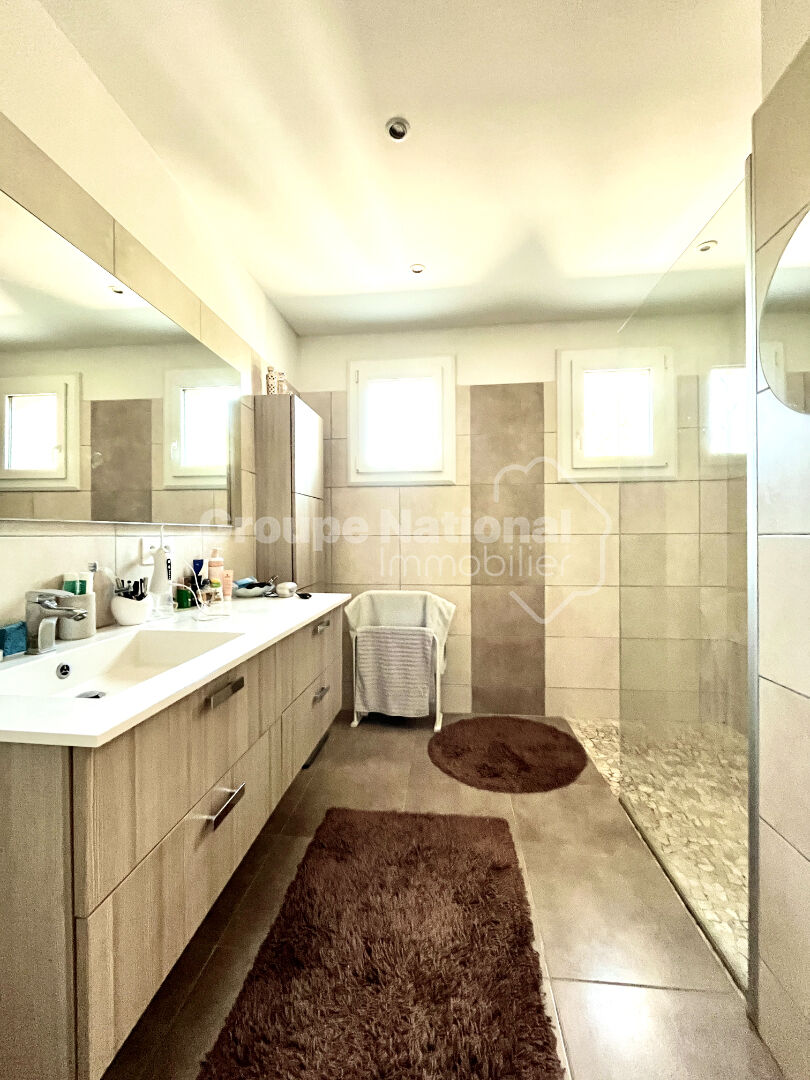 Elle offre un séjour lumineux avec cheminée, une cuisine indépendante, 2 chambres en RdC avec salle d'eau et à l'étage une suite parentale.