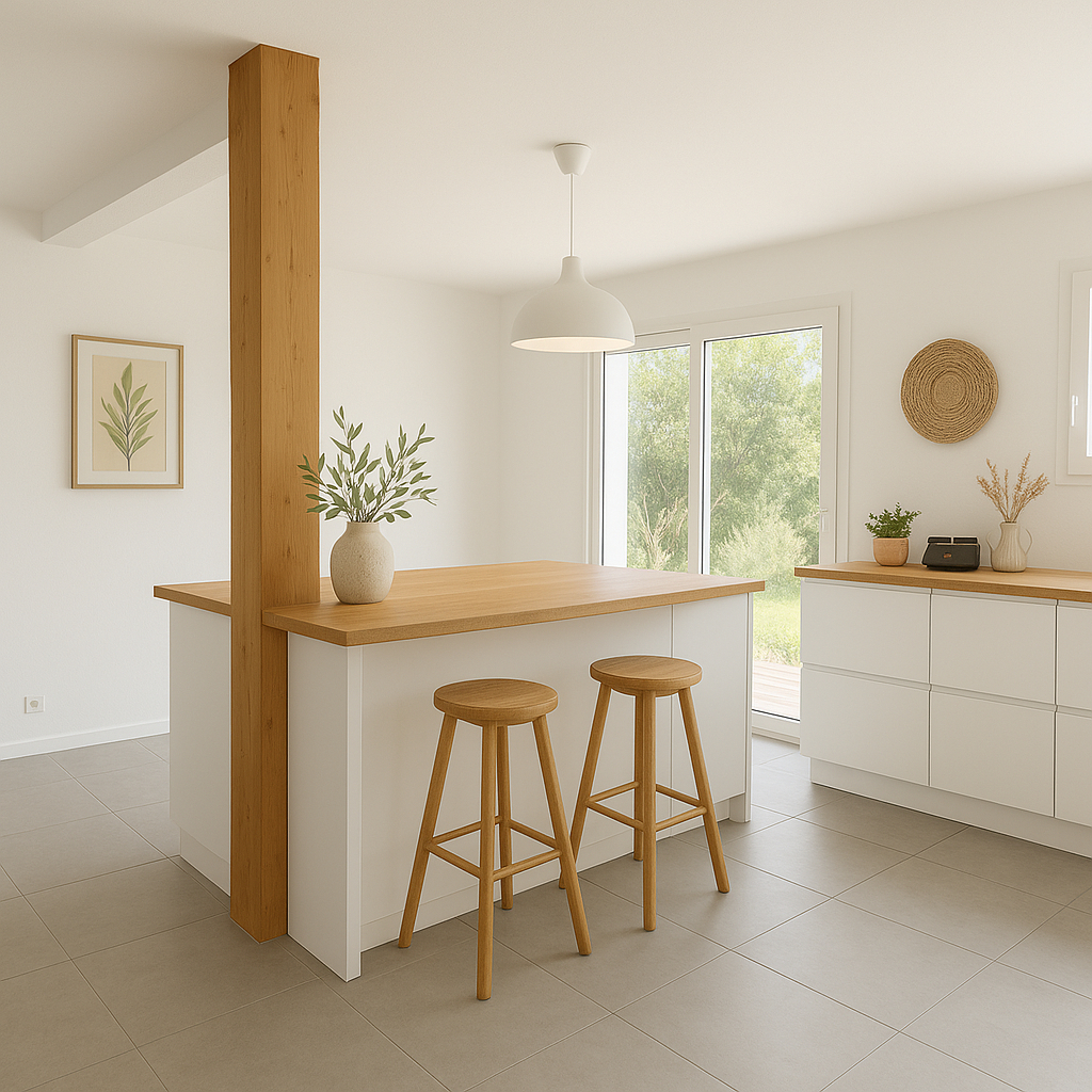 Bâtie en ossature bois, cette maison passive offre des performances thermiques supérieures à la norme RE 2020, garantissant un confort optimal en toute saison ainsi qu'une consommation énergétique réduite.