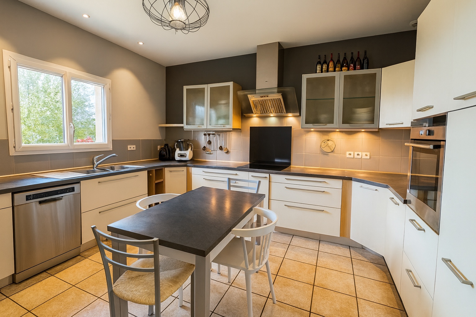Cette maison de plain-pied, rare sur le secteur, offre plus de 217 m² habitables, parfaitement agencés pour une vie familiale harmonieuse et confortable.