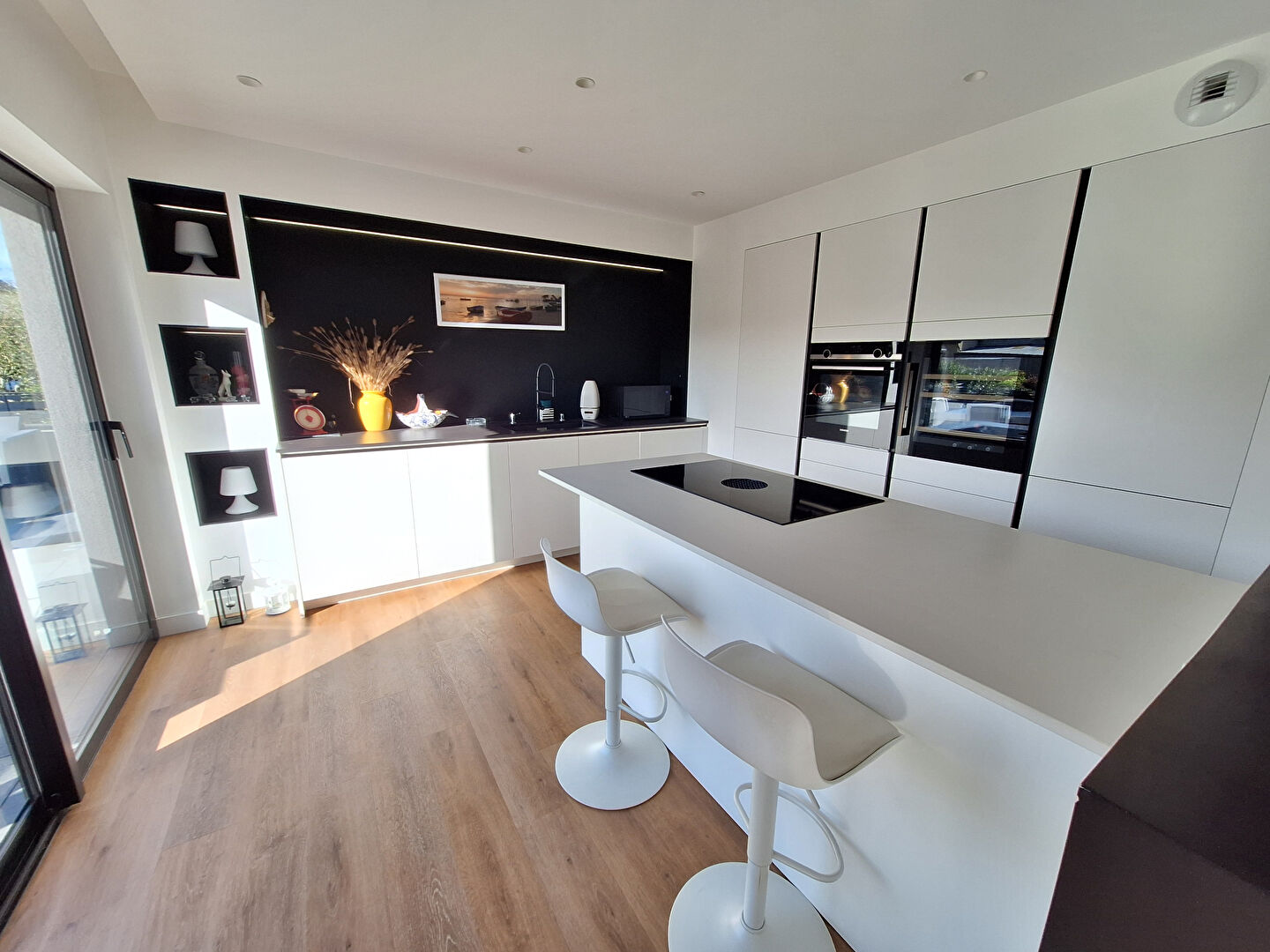 D'une surface totale de 185 m² hors annexes, construite en 2016 (normes RT 2012) cette maison est totalement ouverte sur l'extérieur grâce à de larges baies.