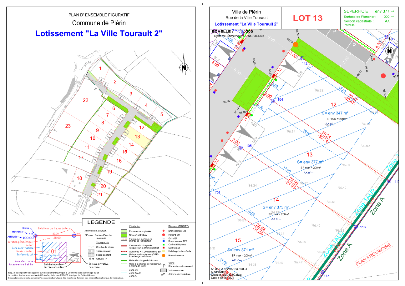 ACCES CONSEIL IMMOBILIER vous présente ce terrain de 377 m² constructible et viabilisé situé dans un nouveau lotissement "LA VILLE TOURAULT 2" à PLERIN.