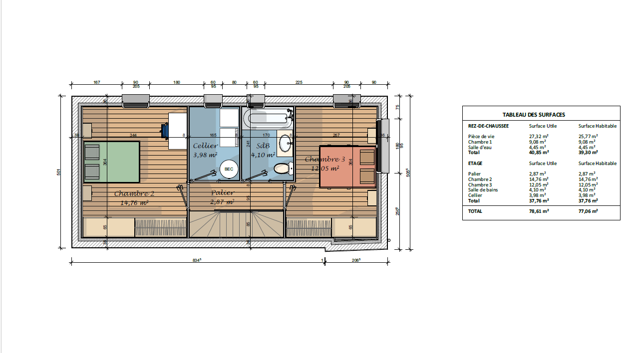 3 chambres dont une suite parentale au rez-de-chaussée avec salle d'eau,