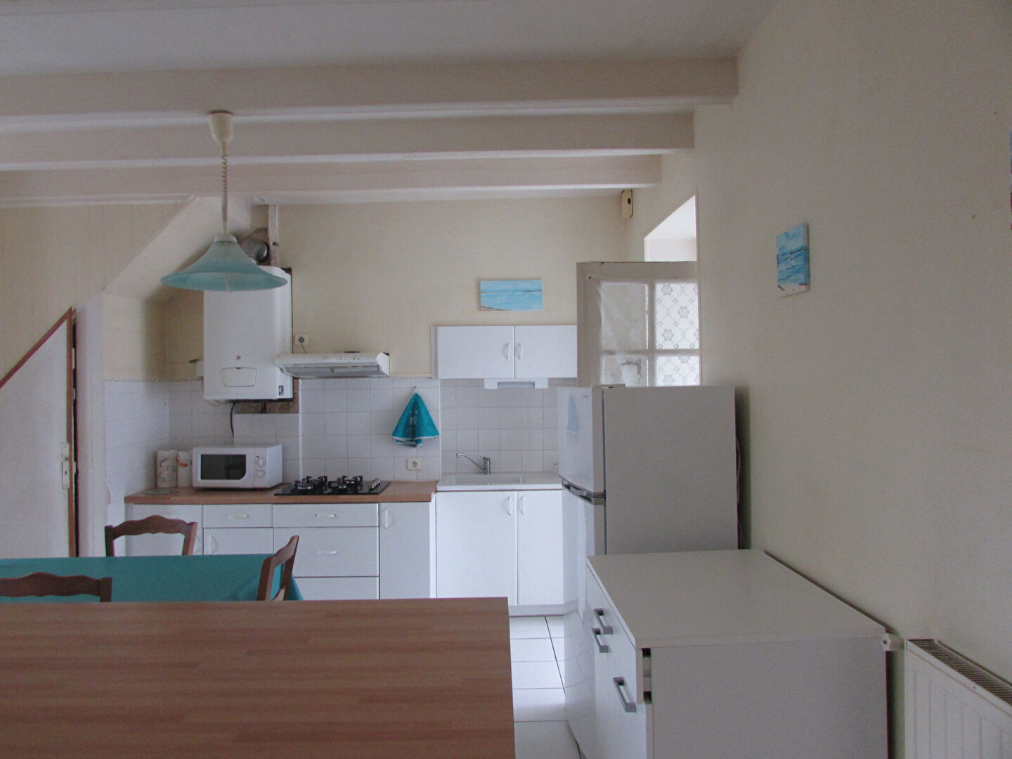 AU COEUR D'ETEL (56410) Maison idéalement située au calme du bourg . Elle comprend au rez-de-chaussée : une véranda, une cuisine, un salon, une salle à manger, une chambre, une salle d'eau avec toilettes. A l'étage : un palier avec placard desservant 3 chambres.