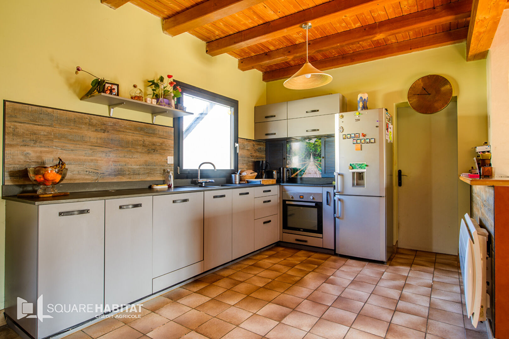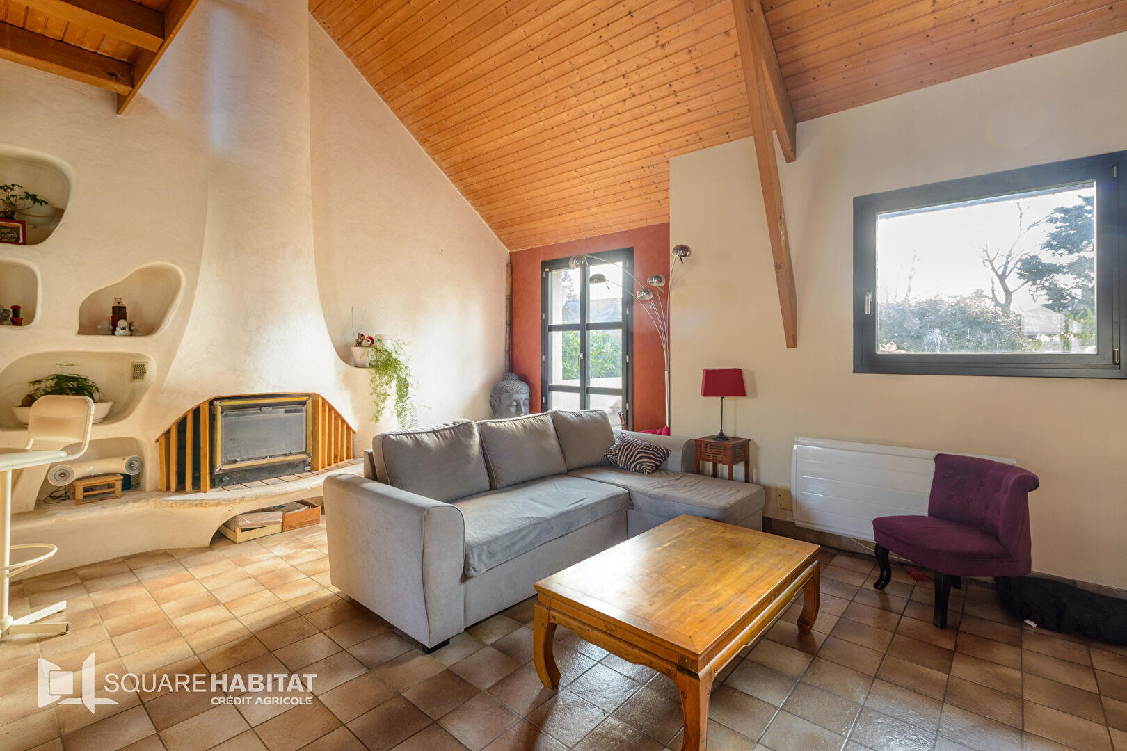 Elle saura vous charmer avec sa belle pièce de vie et sa cheminée centrale, ses volumes tant intérieur qu'extérieur.