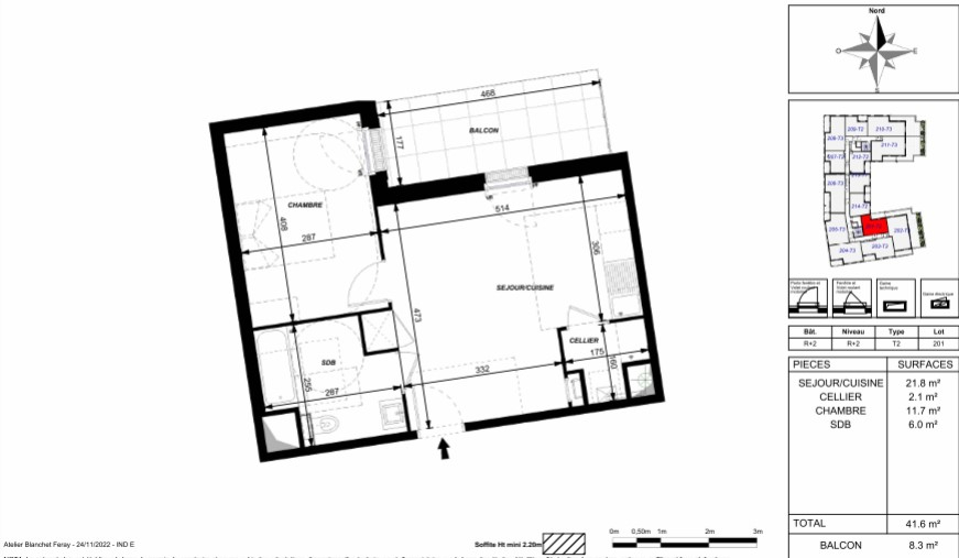 Au deuxième étage de la résidence, il se décompose comme suit : Séjour/cuisine, salle de bains avec WC, chambre, cellier. Le tout est complété par un balcon, deux stationnements en sous-sol ainsi qu'une cave.