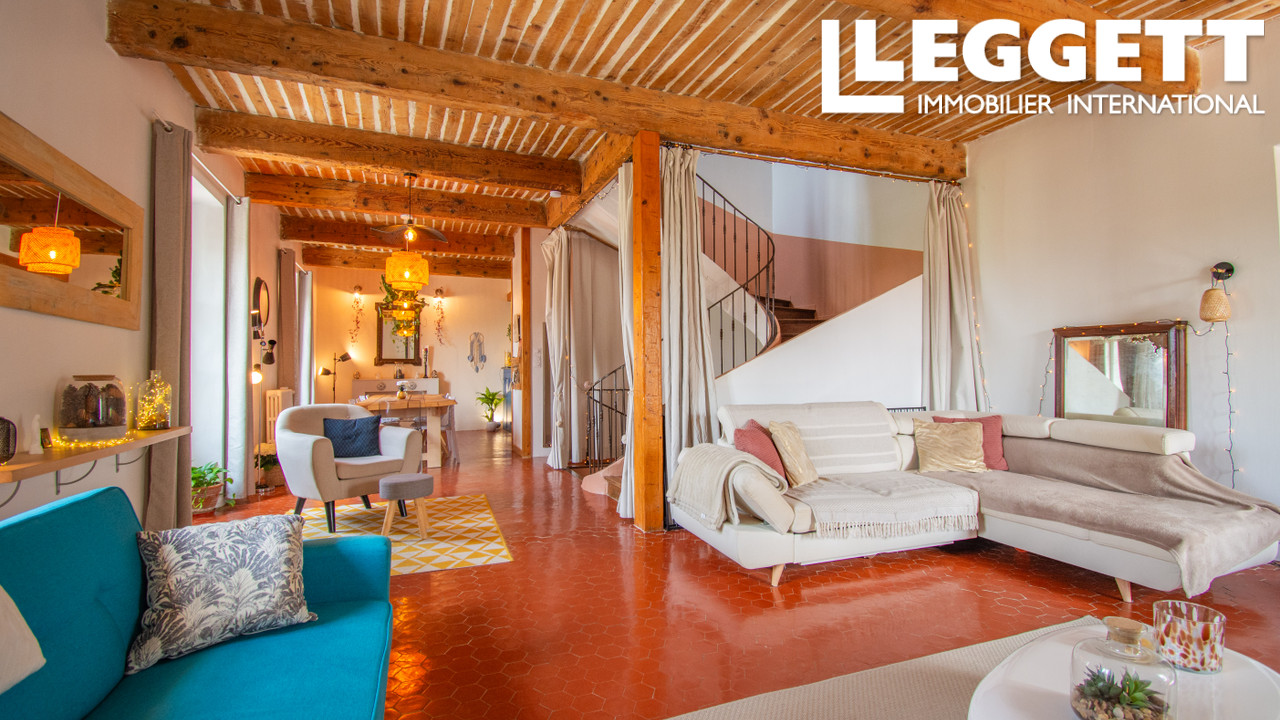 A37458DAD04 - À environ 45 minutes d'Aix-en-Provence, vous trouverez cette propriété spectaculaire et unique, une ancienne maison d'hôtes. Une magnifique maison provençale traditionnelle en pierre construite en 1894, avec de beaux détails de caractère tels que des tomettes de Provence, des murs en pierre méticuleusement restaurés, des armoires et des poutres en bois d'origine préservées. Les plafonds ont une hauteur d'environ 3 mètres de haut à tous les étages.
