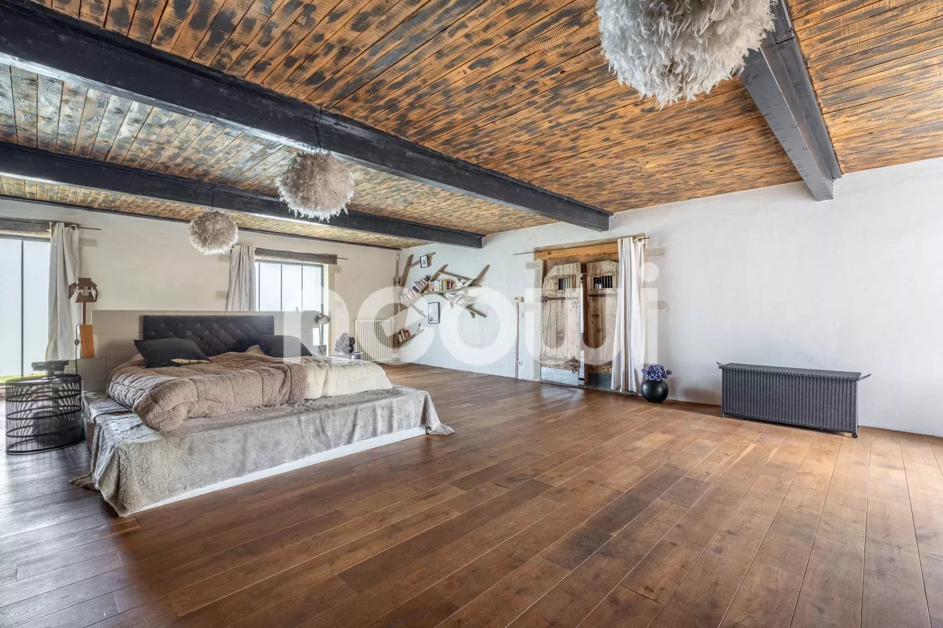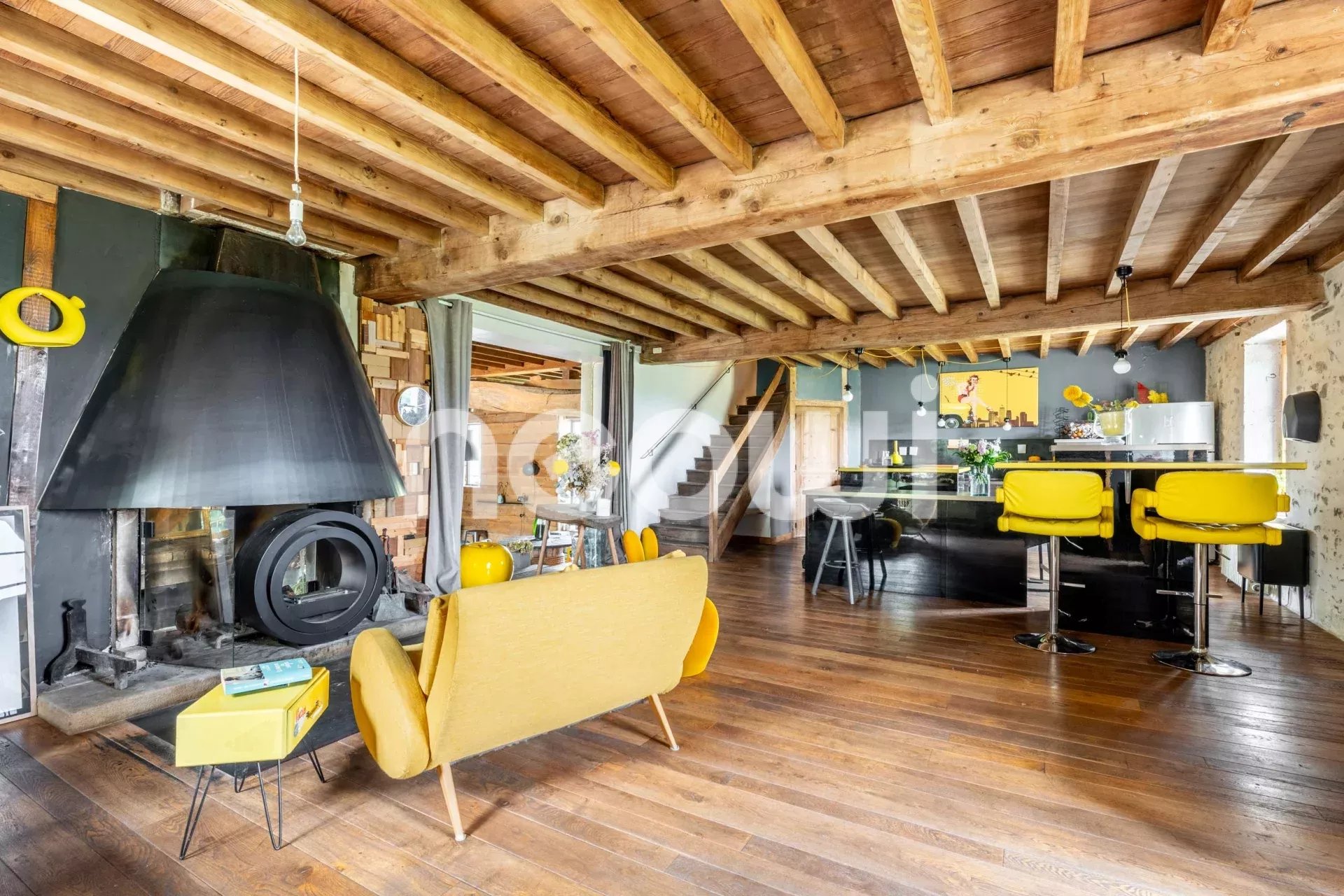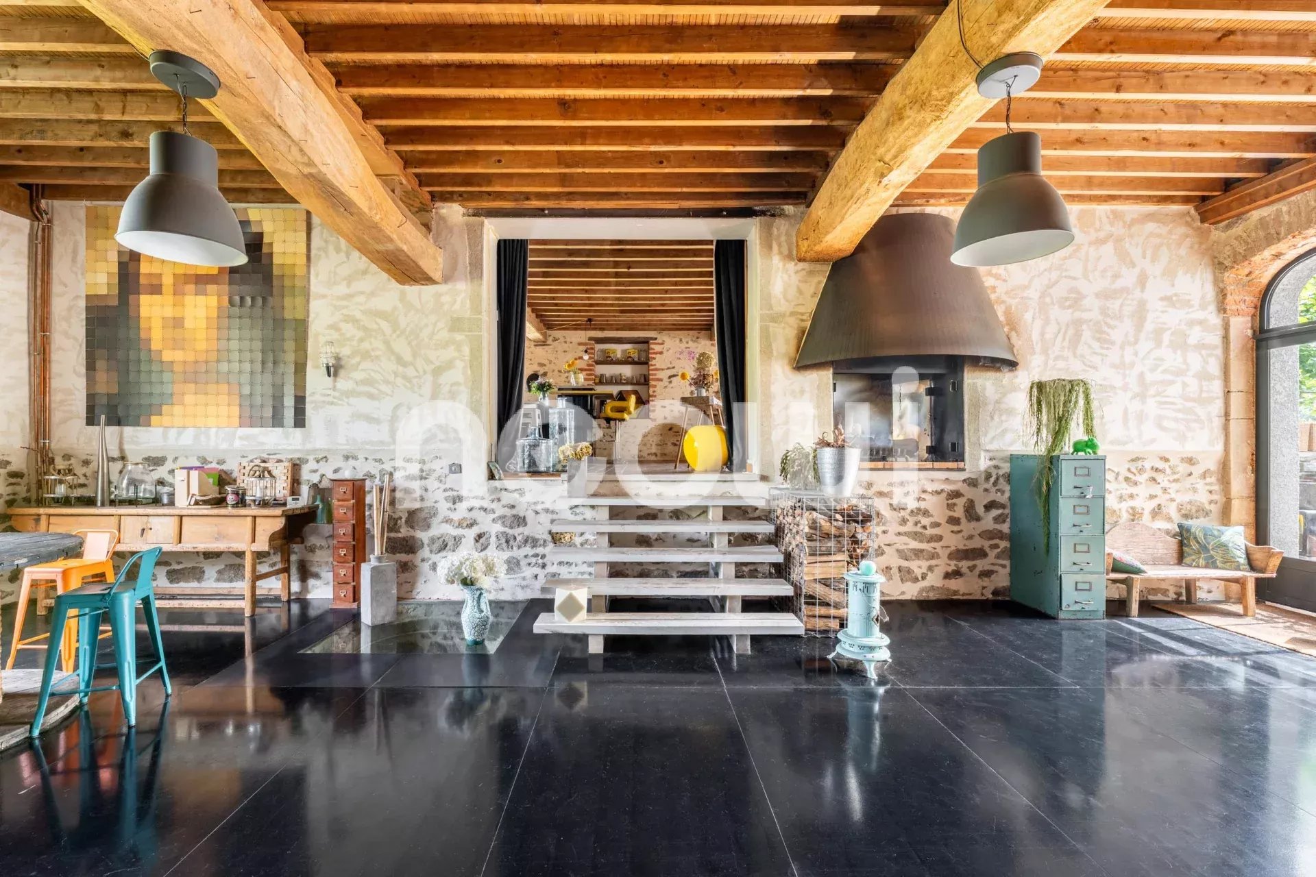 Dans un environnement bucolique et chargé d’histoire, cet ensemble immobilier de 522 m² vous séduira par son cachet, ses volumes exceptionnels et sa vue panoramique sur la vallée du Beaujolais.