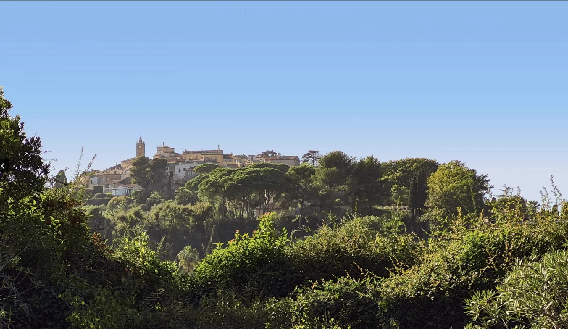 Au calme absolu niché dans un jardin paysagé, jolie villa de 1978 bénéficiant d'une magnifique vue sur le vieux village de Mougins.