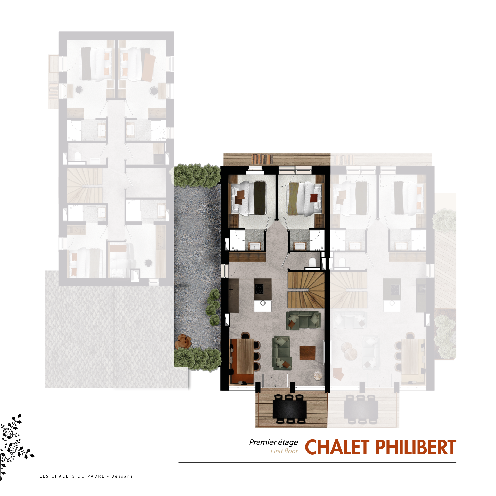 Dans le quartier du Pré de l'Huile, à deux pas de la résidence Cokott et bénéficiant d'un départ skis aux pieds, découvrez le Chalet PHILIBERT, un bien rare à la vente, intégré à un projet de 4 chalets haut de gamme (Humbert, Philibert, Amédée et Louis) conçu par JMV RESORT Architecture.