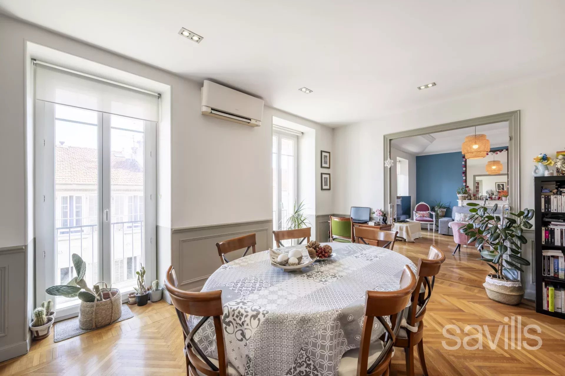 Exclusivité : Dans un quartier dynamique du centre-ville, à deux pas de toutes les commodités, découvrez ce superbe appartement spaciex de 155 m² situé au dernier étage d’un immeuble niçois récemment ravalé, avec ascenseur.