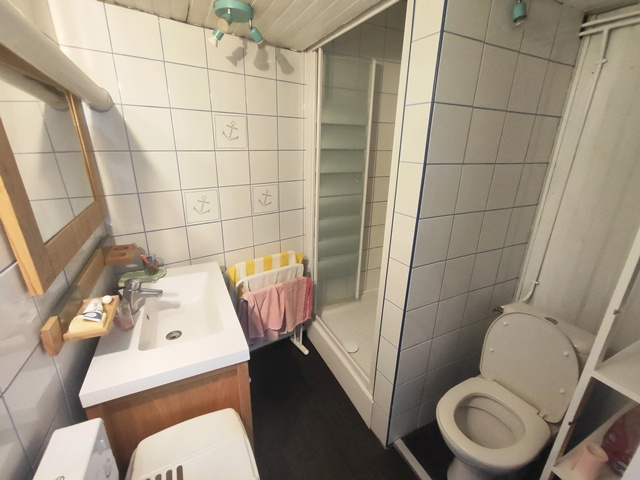 Cette maison est composée, au rez-de-chaussée : salon/séjour spacieux, cuisine lumineuse et salle d'eau avec WC.