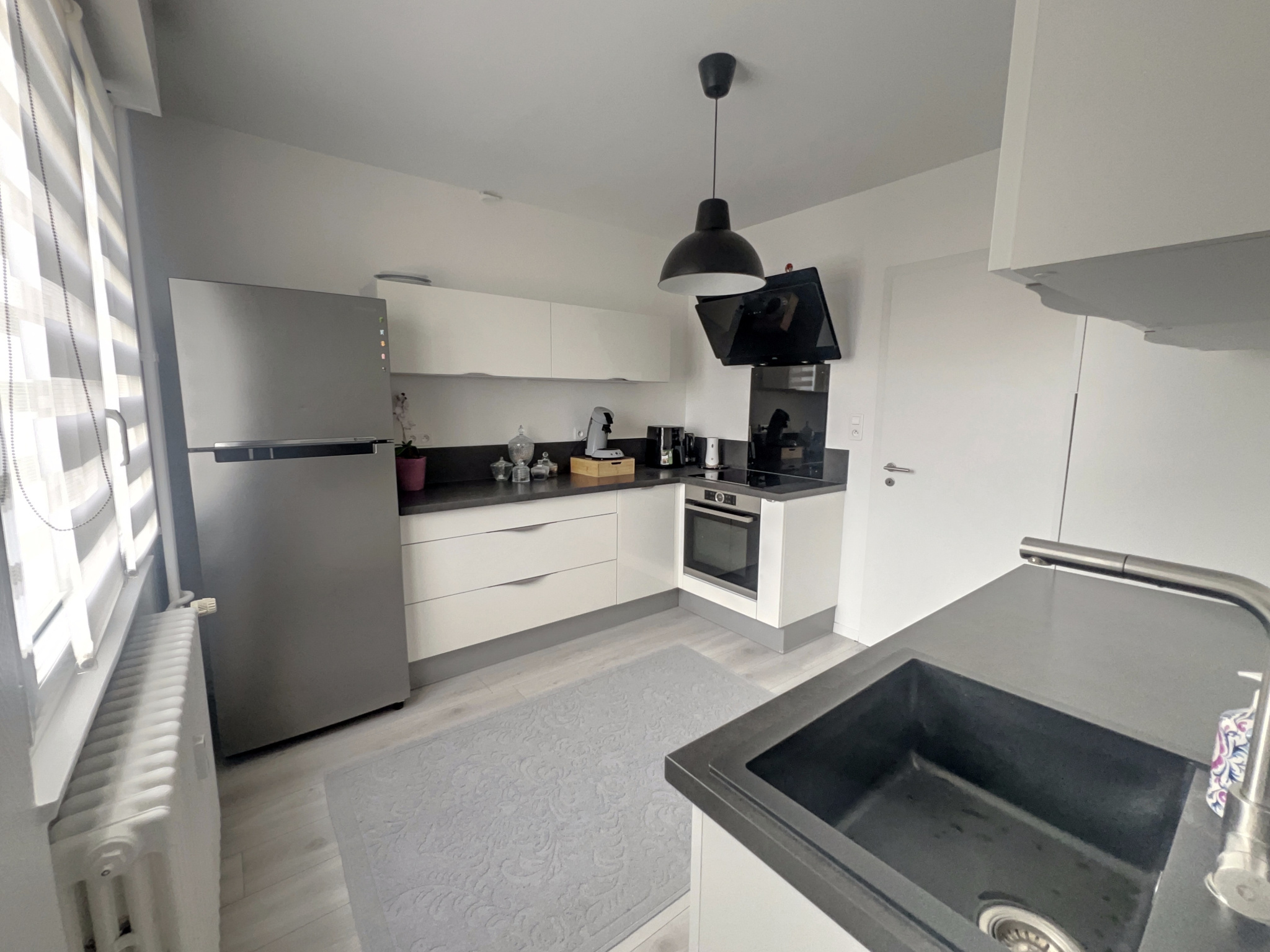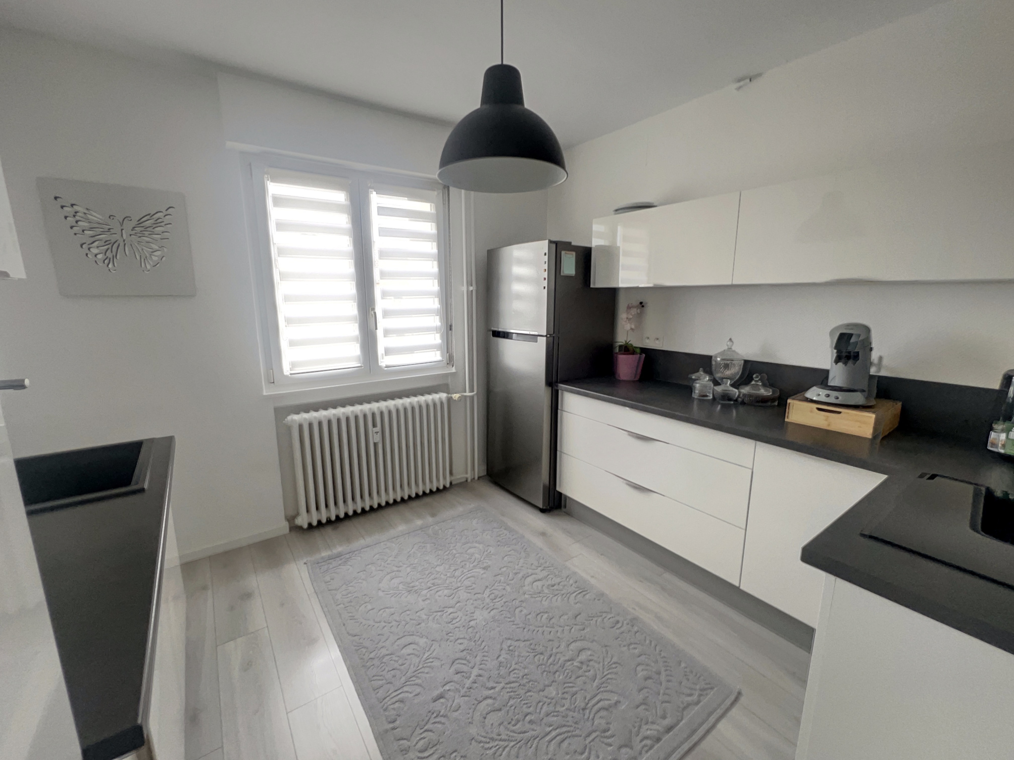 Vous serez immédiatement séduit par une entrée spacieuse avec placard intégré, offrant un espace de rangement pratique et fonctionnel. Le séjour lumineux d'environ 18,39 m2 s'ouvre sur un balcon, idéal pour profiter des beaux jours . La cuisine séparée et entièrement équipée, agrémentée d'une loggia, combine fonctionnalité et confort, trois chambres, une salle d'eau moderne et un WC séparé complètent parfaitement cet appartement.