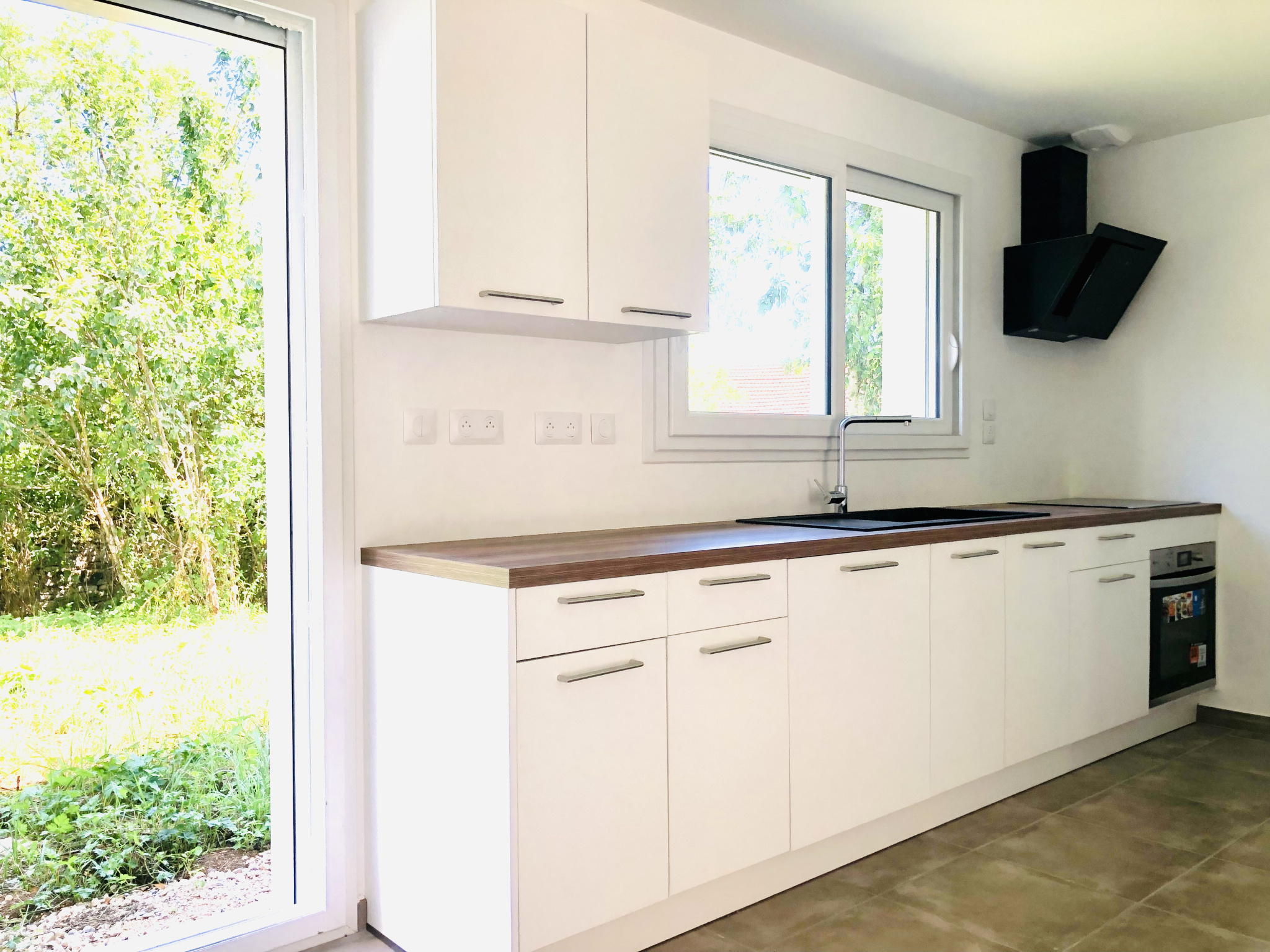 Au coeur du village , maison neuve avec trois chambres , deux salles de bains , garage et terrain.