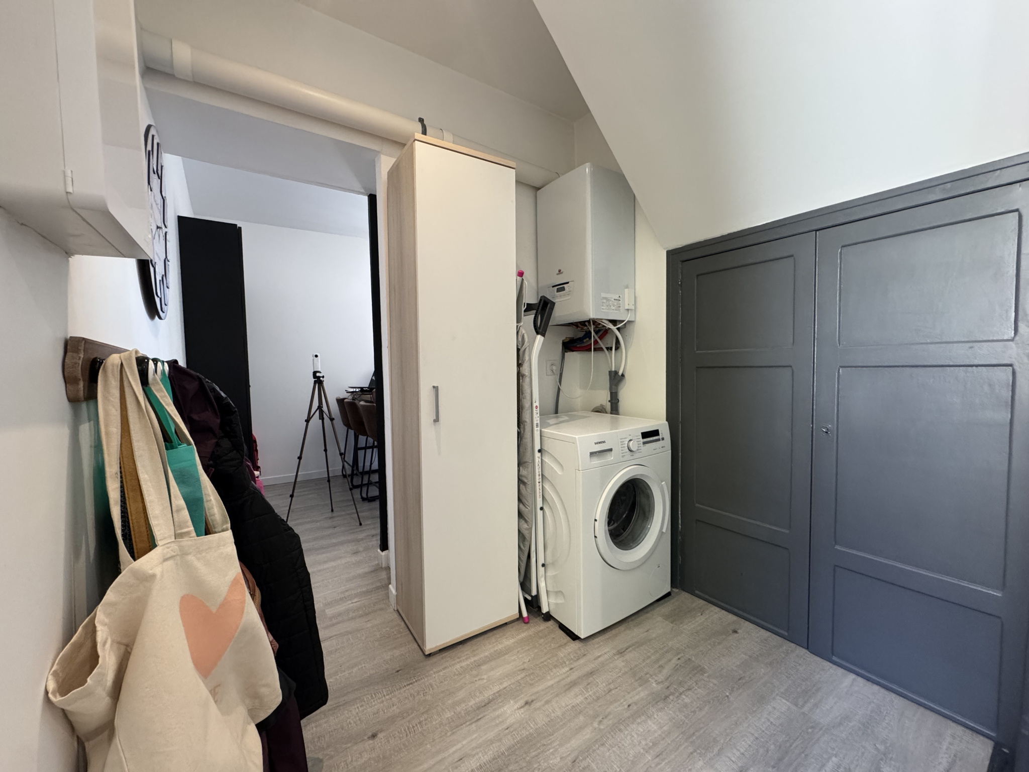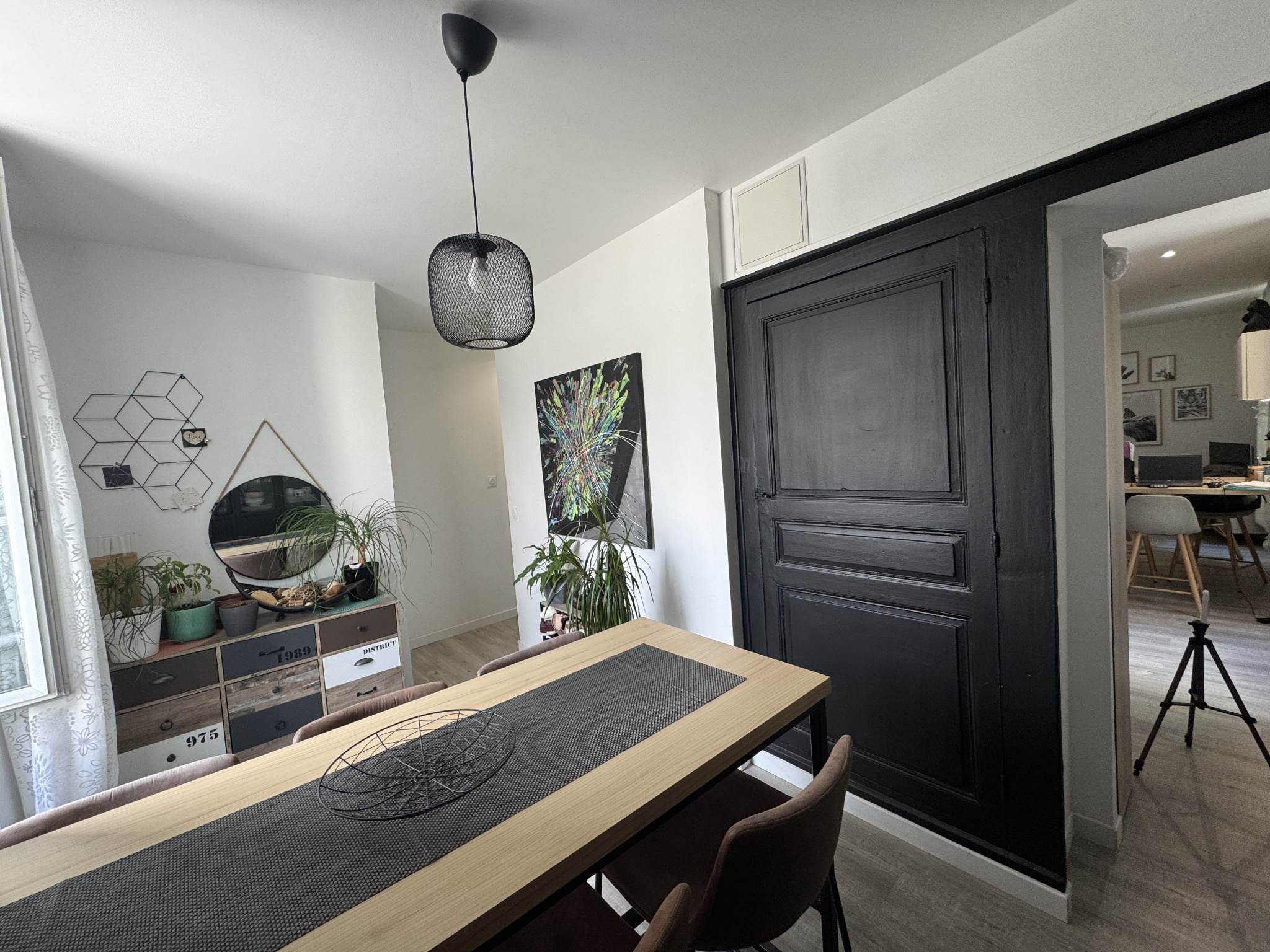 À l'étage, coup de coeur assuré pour un duplex moderne de 89 m2, entièrement rénové avec goût. Vous profiterez d'une entrée, d'une cuisine ouverte sur un salon lumineux de 25 m2, d'un séjour cosy de 9 m2, d'une buanderie et de WC indépendants.