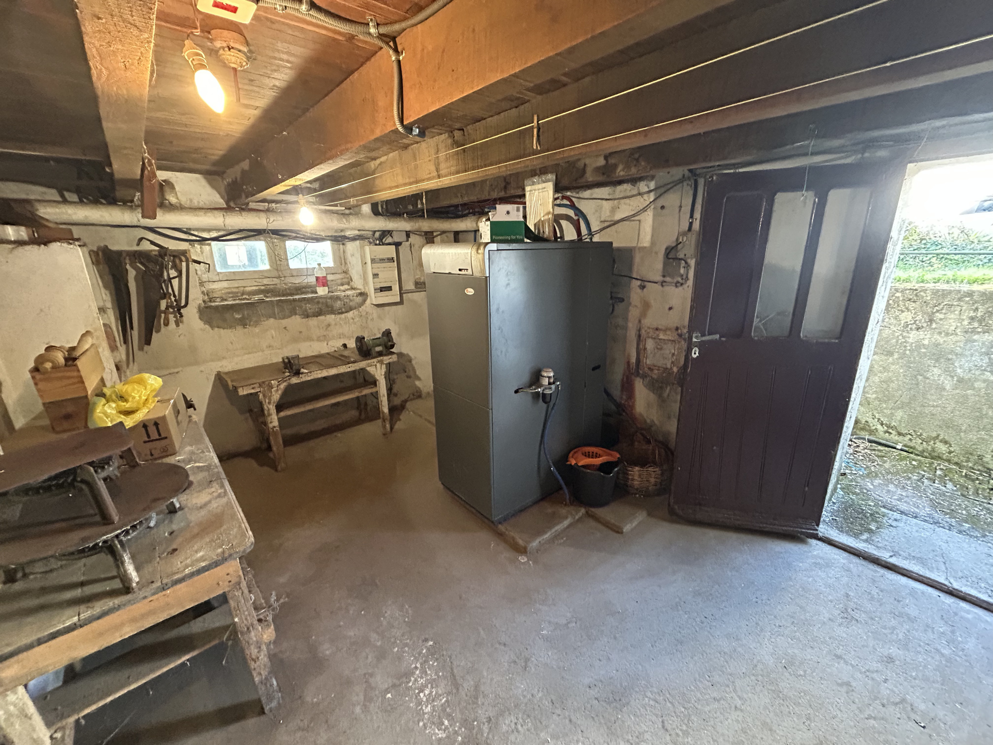 La maison dispose également d'un garage attenant et d'un sous-sol complet, offrant de nombreuses possibilités de rangement ou d'aménagement.
