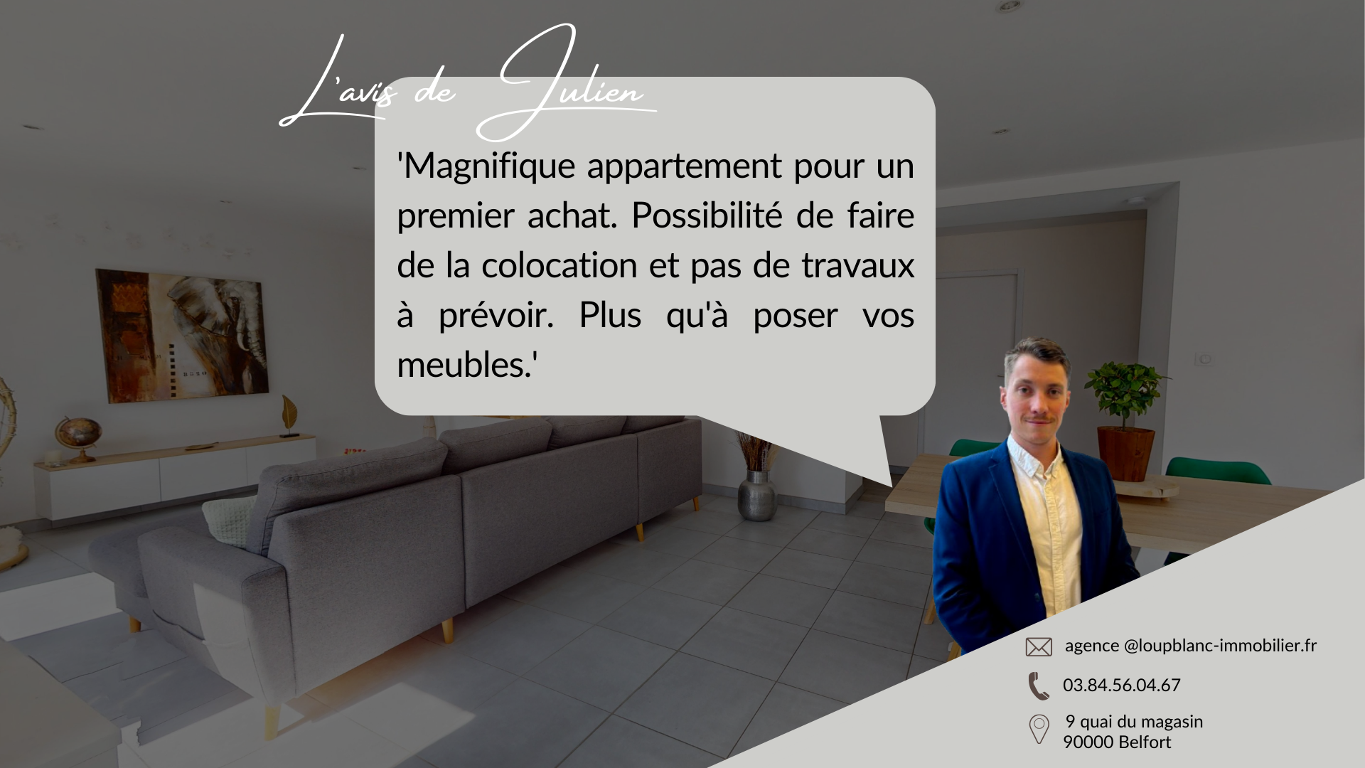 L'avis de Julien : 'Magnifique appartement pour un premier achat, possibilité de faire de la colocation également, pas de travaux à prévoir. Plus qu'à poser vos meubles.'