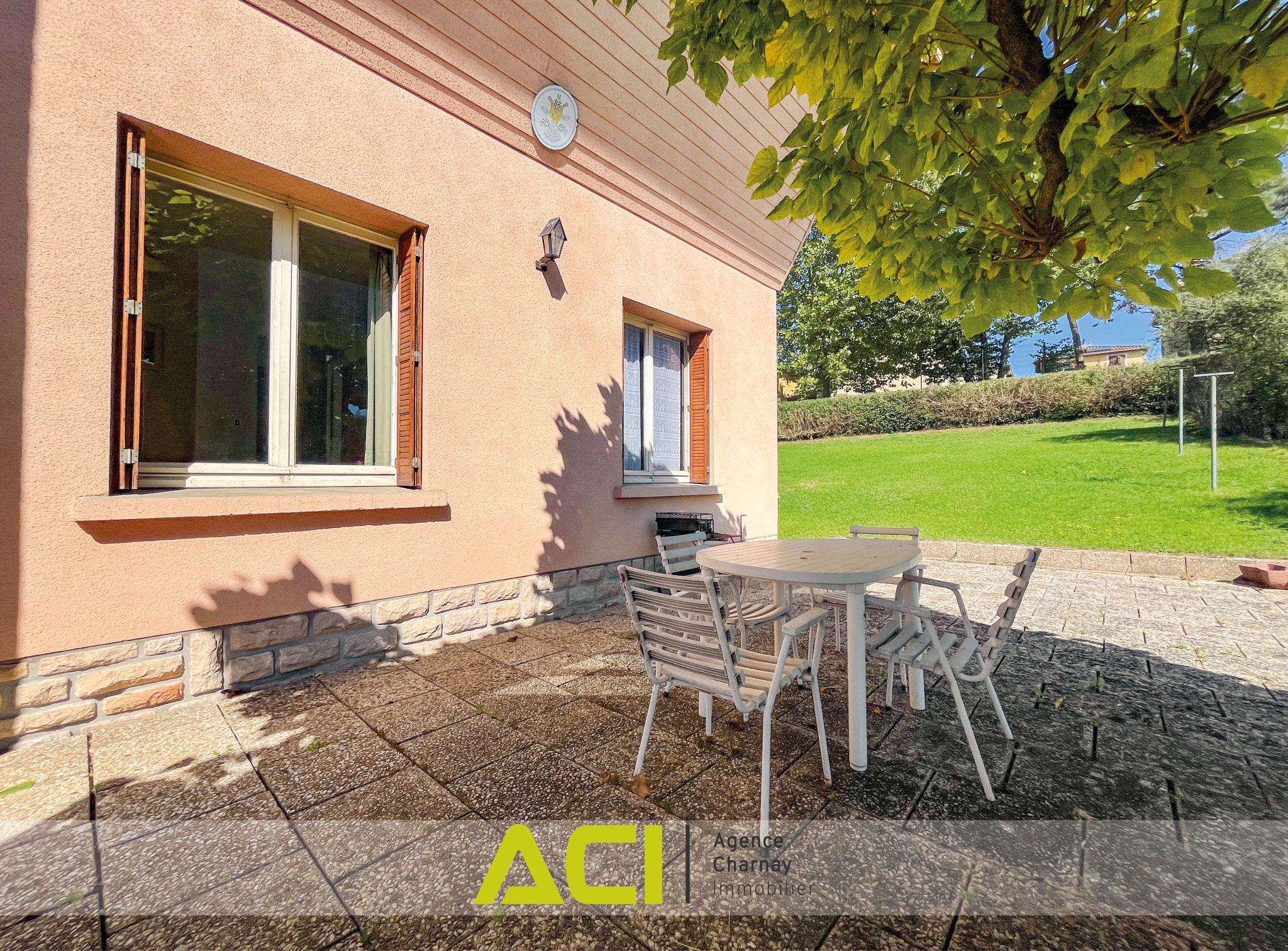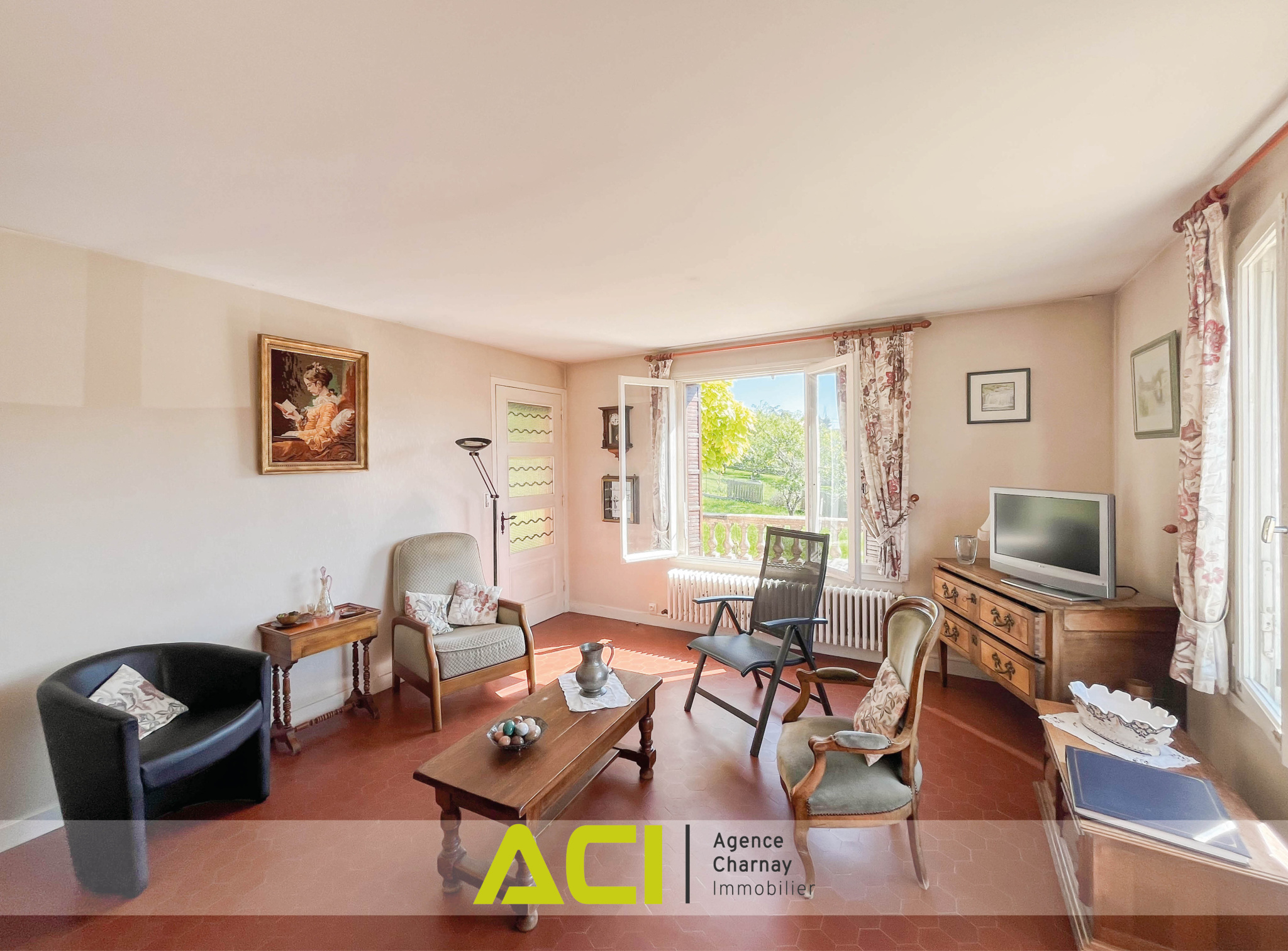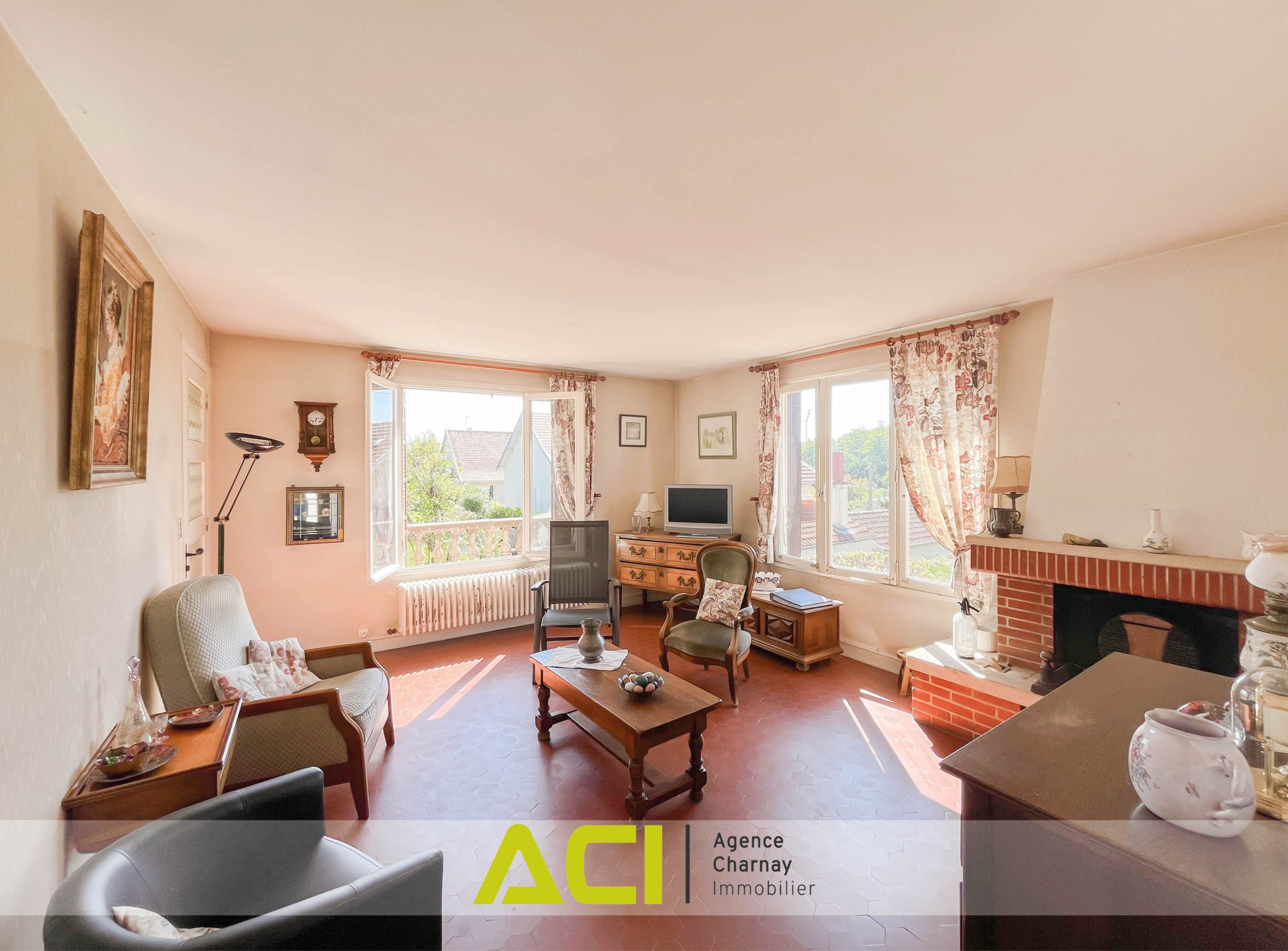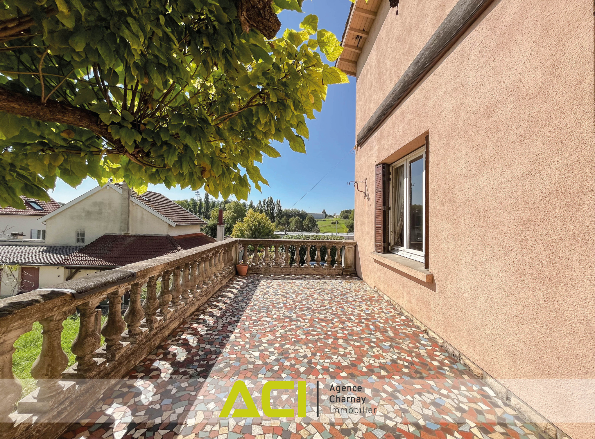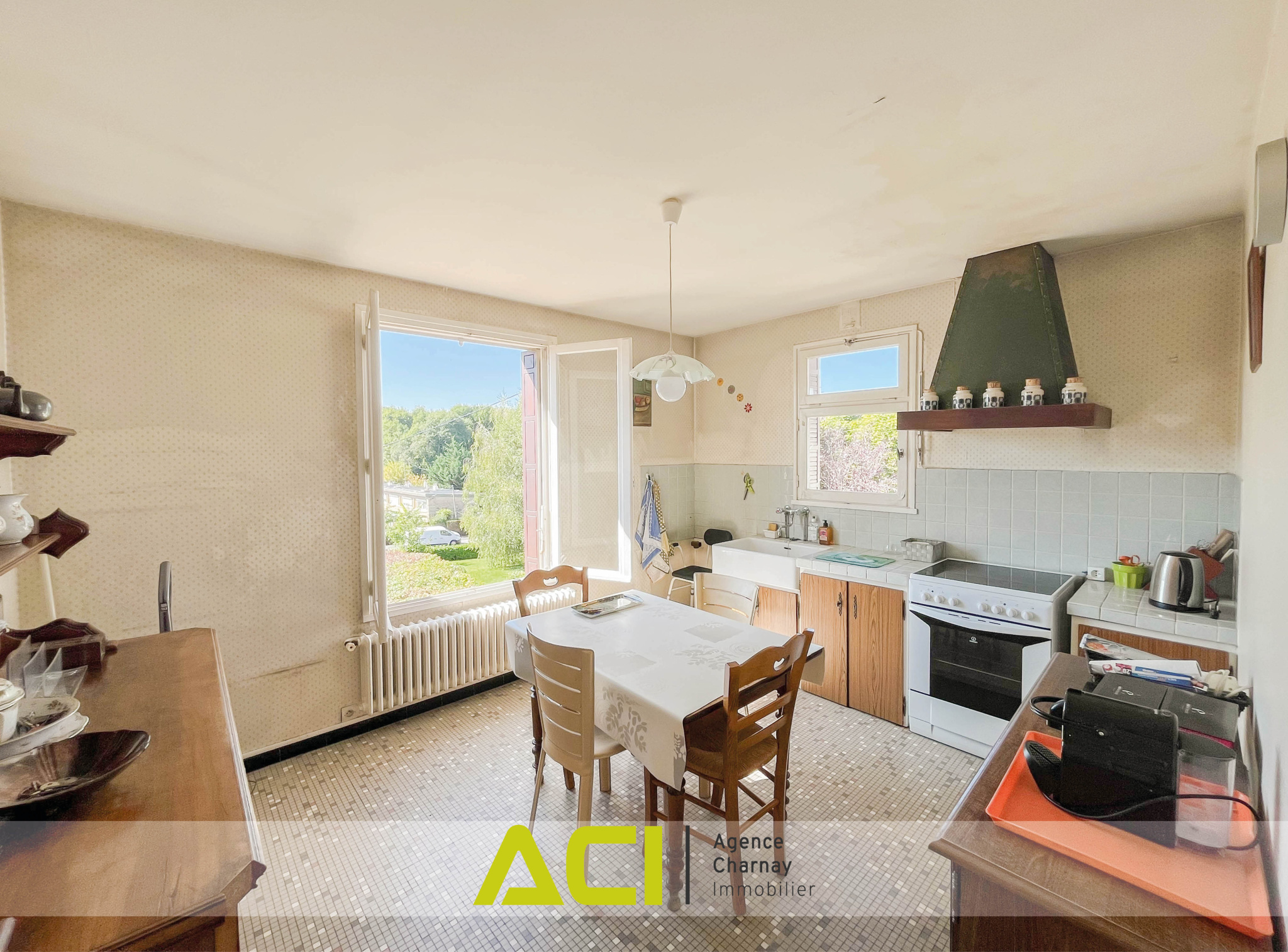 Située à mi-chemin des centres-villes de MACON et CHARNAY, en retrait des voies et en position dominante, belle villa d'architecte des années 1960 à rénover, d'une surface d'environ 120 m2, composée comme suit : à l'étage : entrée, cuisine aménagée, lumineuse pièce à vivre avec cheminée et accès direct sur terrasses et jardin, dégagement avec placards desservant trois chambres, salle d'eau et wc ; au rez-de-chaussée / sous-sol : hall et dégagement avec wc desservant une quatrième chambre, pièce d'été d'environ 20 m2, grand garage avec cave à la suite ; à l'extérieur : terrasses, second garage indépendant, cour et joli jardin clos de plus de 1 350 m2. Chauffage central au gaz de ville - Beau potentiel de rénovation et d'aménagement - Cadre verdoyant - Proche commodités et transports - Taxe foncière 2024 : 1 782 euros.