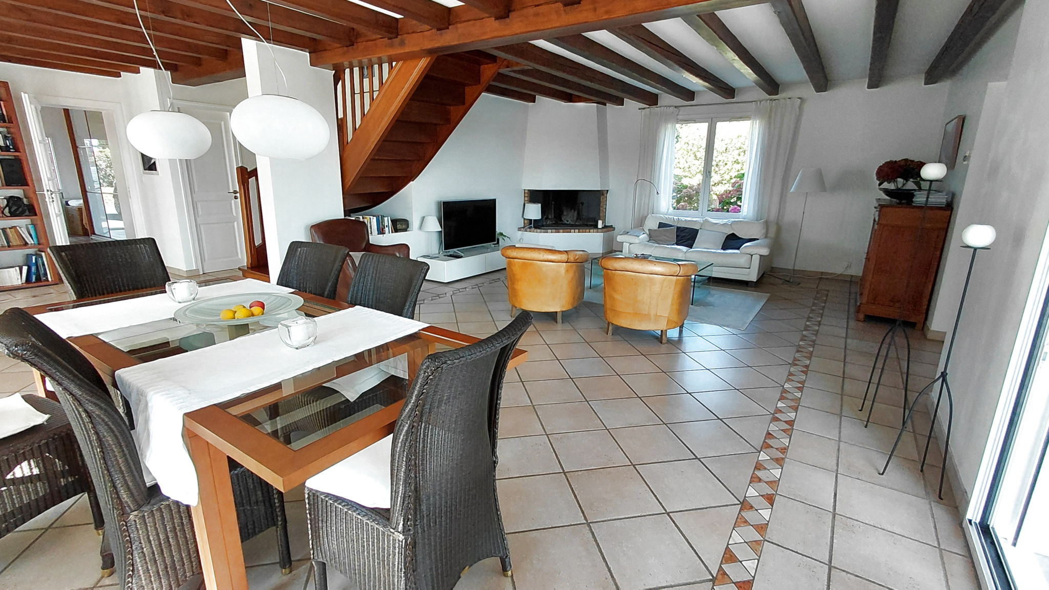 Elle se compose d'un vaste séjour lumineux avec une cheminée donnant accès au jardin et à une terrasse couverte, une suite parentale avec une grande salle de bains, une cuisine séparée et équipée donnant sur la terrasse couverte, une buanderie et un WC séparé.