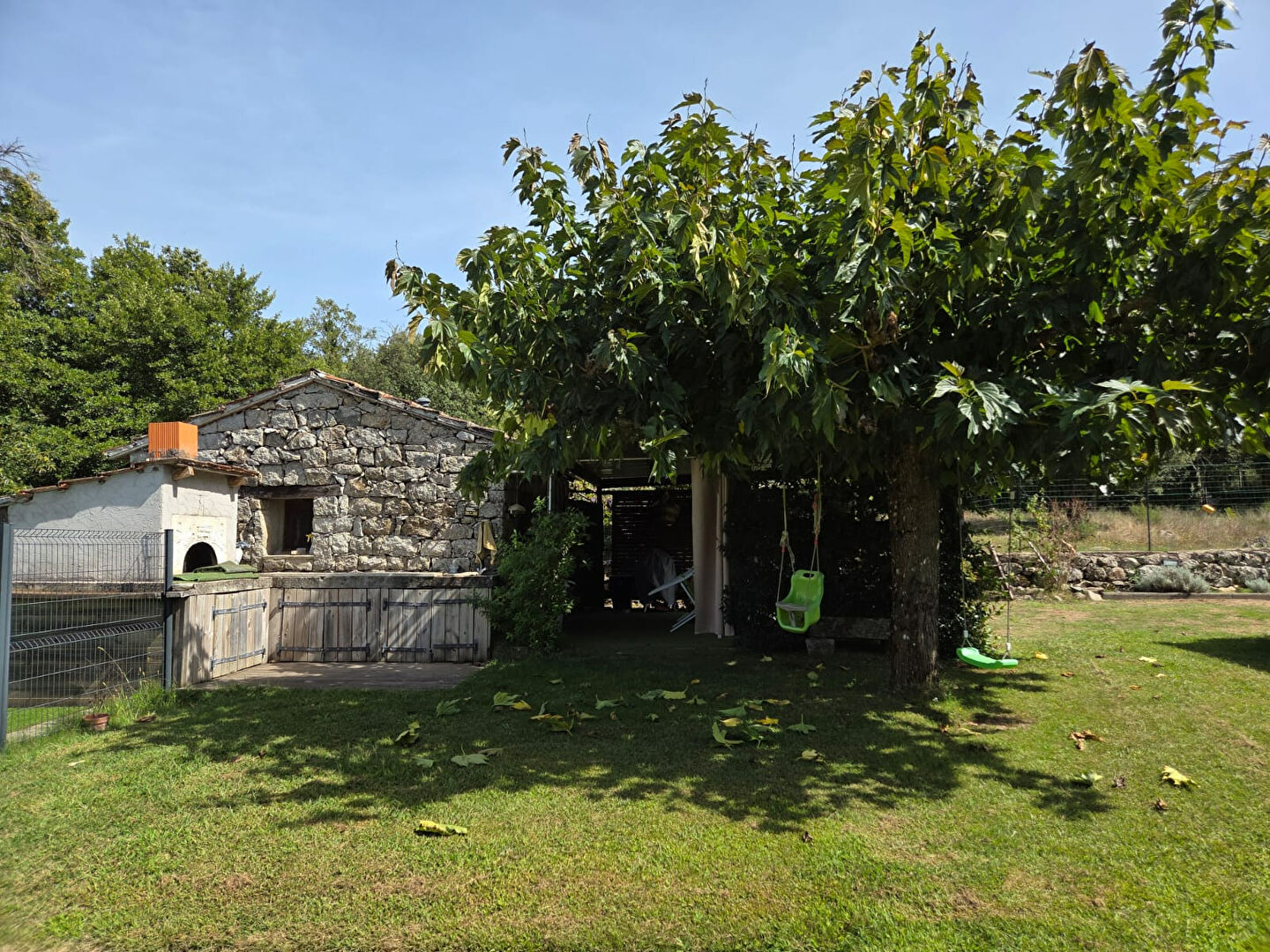 Piscine à l'abri des regards, terrain de pétanque, four à pizza, abris de jardin, cave.
