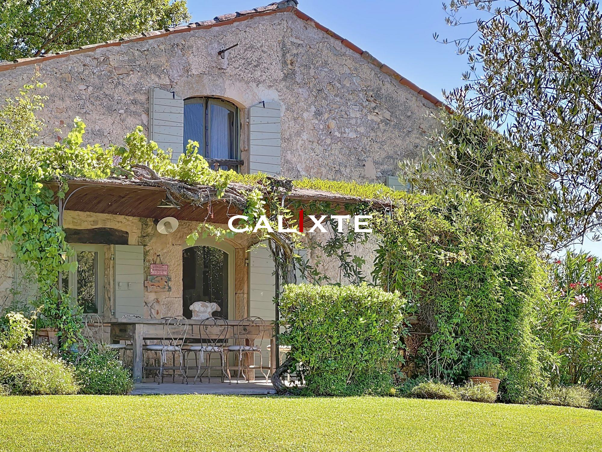 La maison est positionnée légèrement en hauteur, plein sud, sur le côté on y voit Saint Cézaire au loin, elle offre un vaste séjour cheminée de 48 m2 avec ses ouvertures typiquement provençales, accès à la grande cuisine indépendante qui donne sur la terrasse ombragée, 4 chambres dont 2 en suite plus une troisième salle de bains avec wc.