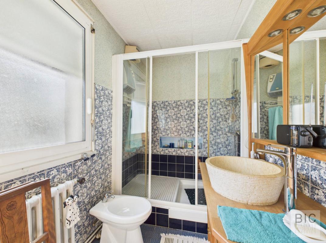 À l'étage, l'espace nuit comprend trois chambres (9,08 m² - 10,64 m² - 12,57 m²), une salle d'eau avec fenêtre (douche, lavabo, bidet), ainsi qu'un second WC séparé.
