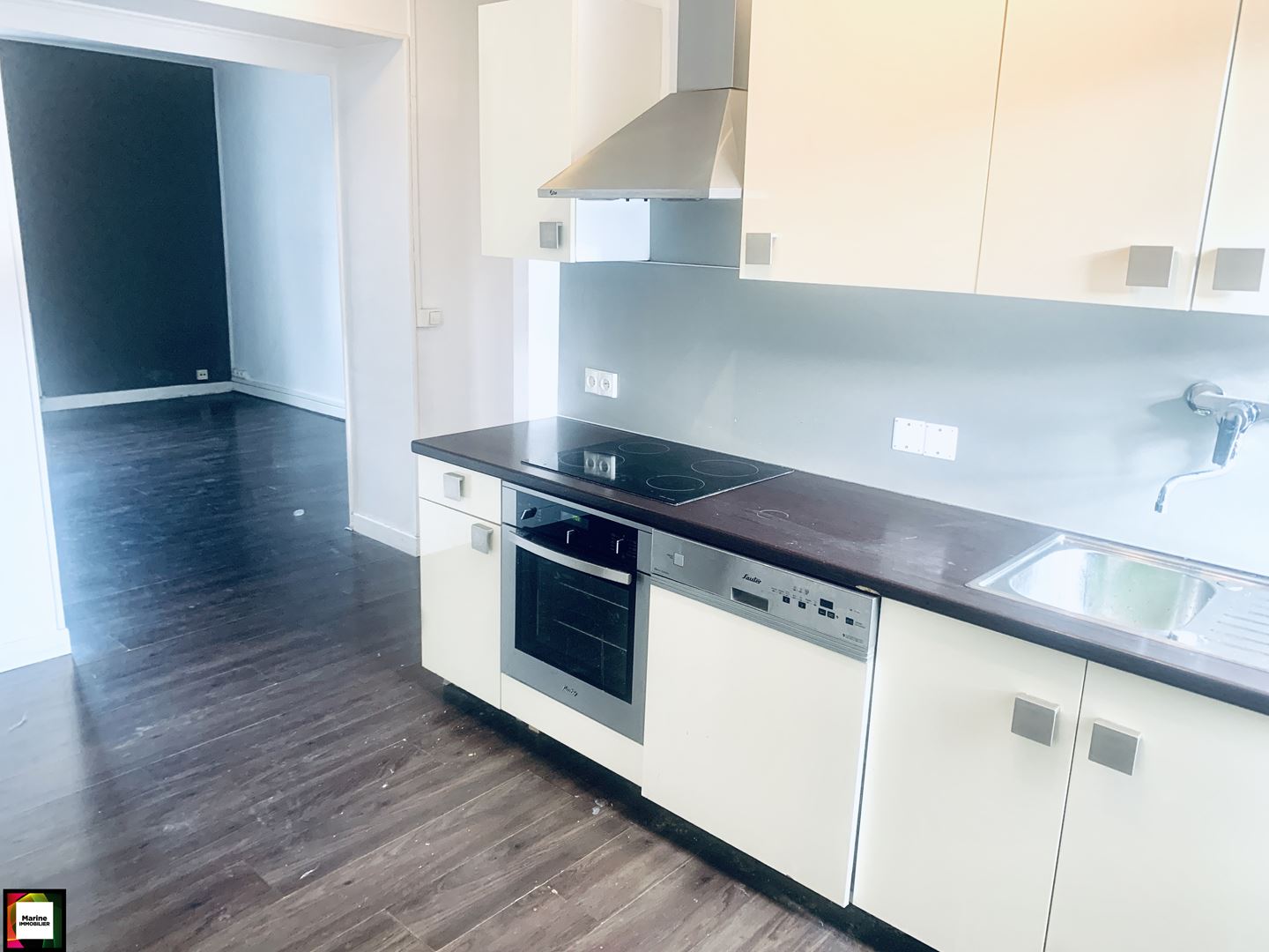 L?entrée distribue une cuisine intégrée et équipée (four, plaque de cuisson, hotte, lave-vaisselle), un séjour lumineux et deux chambres confortables.