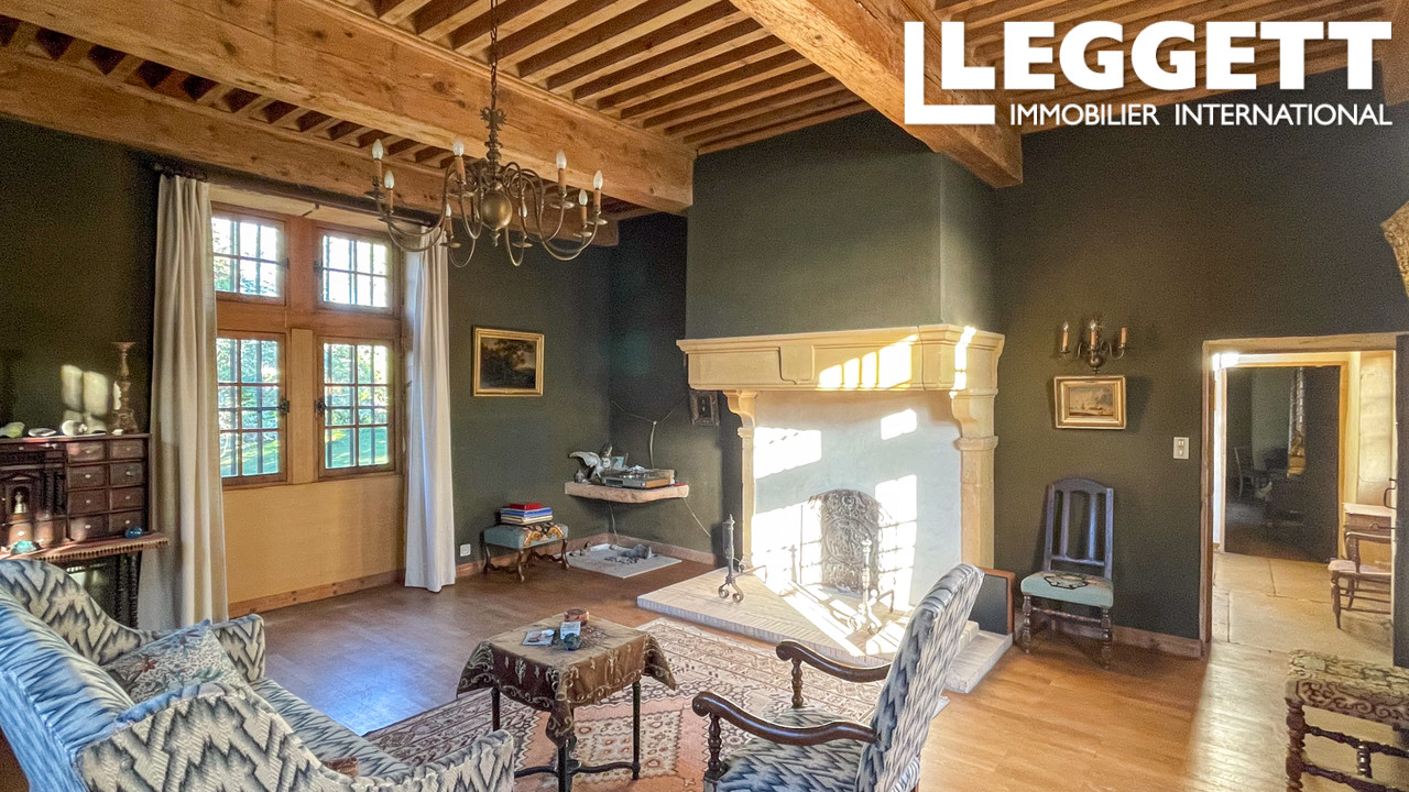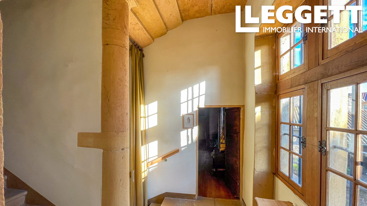 A39989EHO69 - Superbe demeure Renaissance française de 1574 dégageant permanence, sérénité et sécurité. L'entrée par la porte d'origine mène à un hall avec sol authentique et colonne murale à chapiteau concentrique, base et arc magnifiquement sculptés dans la pierre dorée locale. Au pied d'un splendide escalier en pierre desservant toutes les pièces principales.