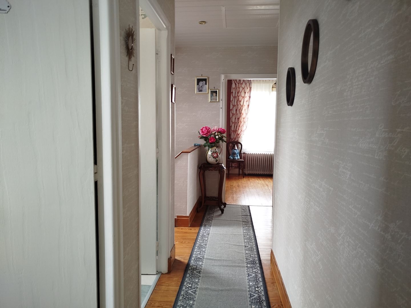A l'étage, un couloir desservant trois chambres spacieuses, une salle de bain et douche et un deuxième WC.