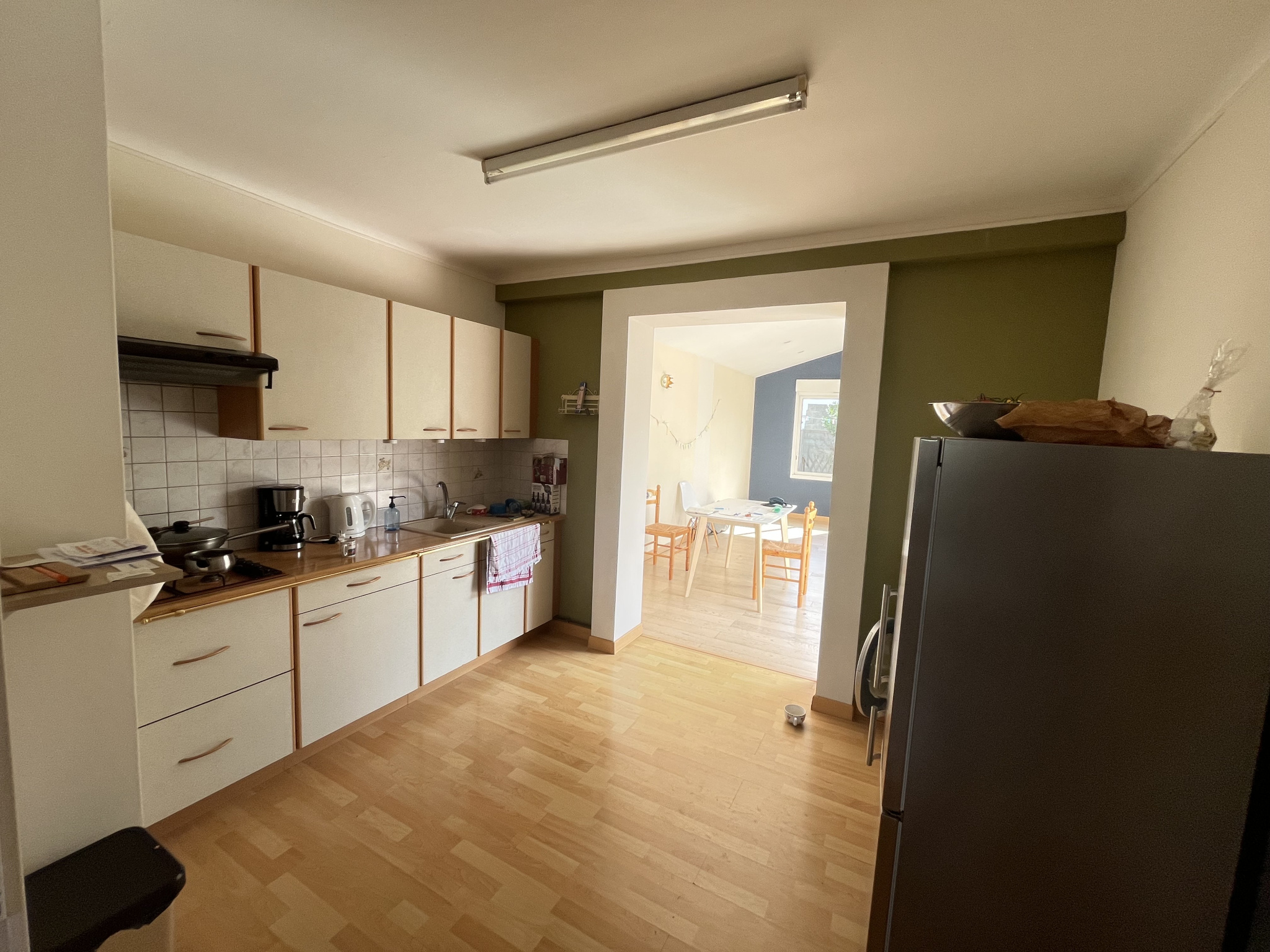 Rez-de-chaussée : entrée avec placard améangé et WC, salon convivial ouvrant sur jardin et terrasse, cuisine ouverte aménagée et salle à manger