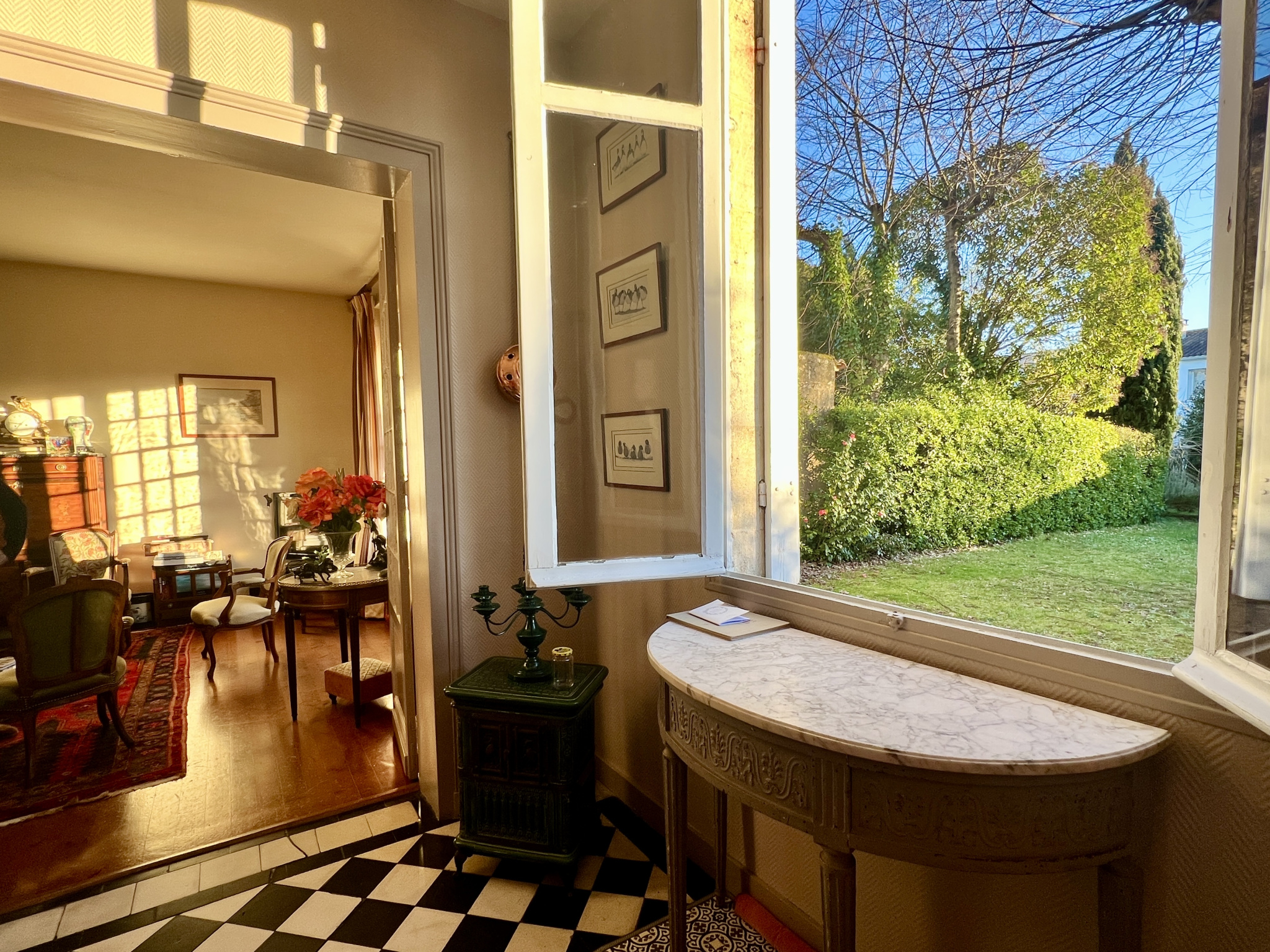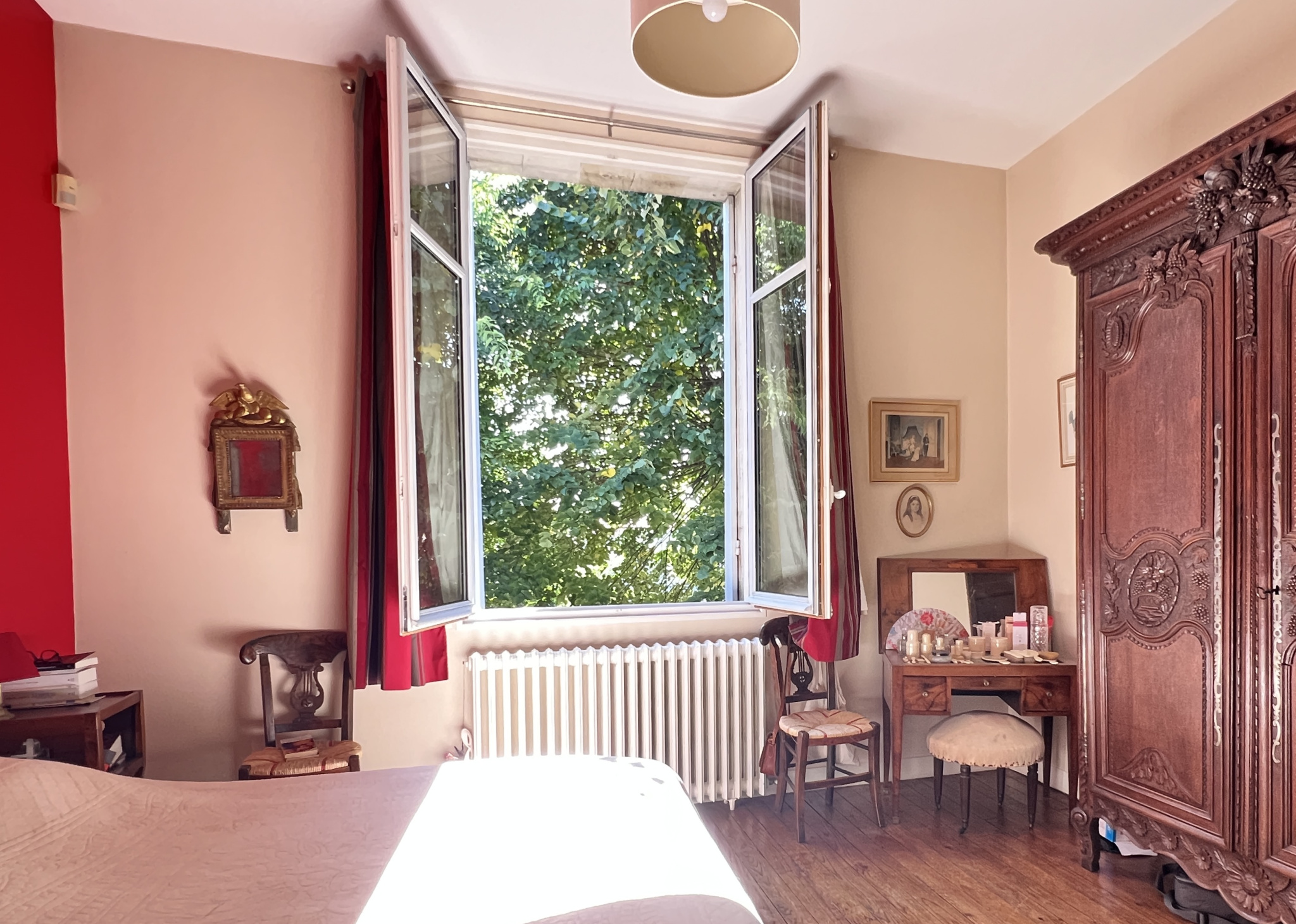 Jolie maison avec un jardin bien exposé et deux garages. Derrière une grille, cette allée dessert une maison mitoyenne sur un seul côté. Au rez-de-chaussée, une grande entrée ouvre sur un beau séjour traversant avec plancher et cheminée, le tout donnant de plain-pied sur une terrasse et un agréable jardin sud. La salle à manger ouvre sur une grande cuisine dînatoire. Au premier étage, un palier dessert trois grandes chambres, dont une avec un coin bureau, une salle de bains, une salle d'eau et de nombreux rangements. Au deuxième, deux grandes chambres, un bureau ainsi qu'une salle d'eau complètent cette agréable maison familiale. Le jardin et la terrasse très bien exposés permettent de profiter pleinement d'un joli jardin arboré. Une cave et un double garage permettent de nombreux rangements.