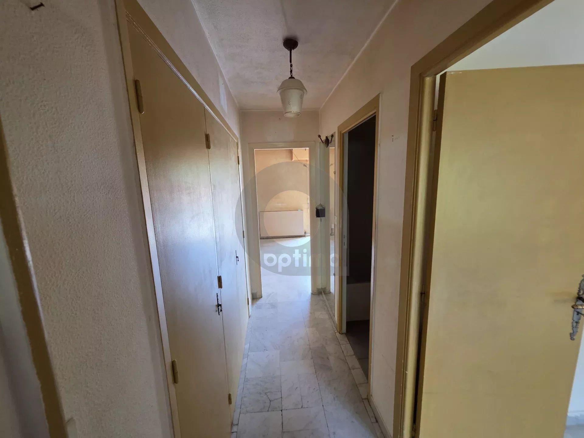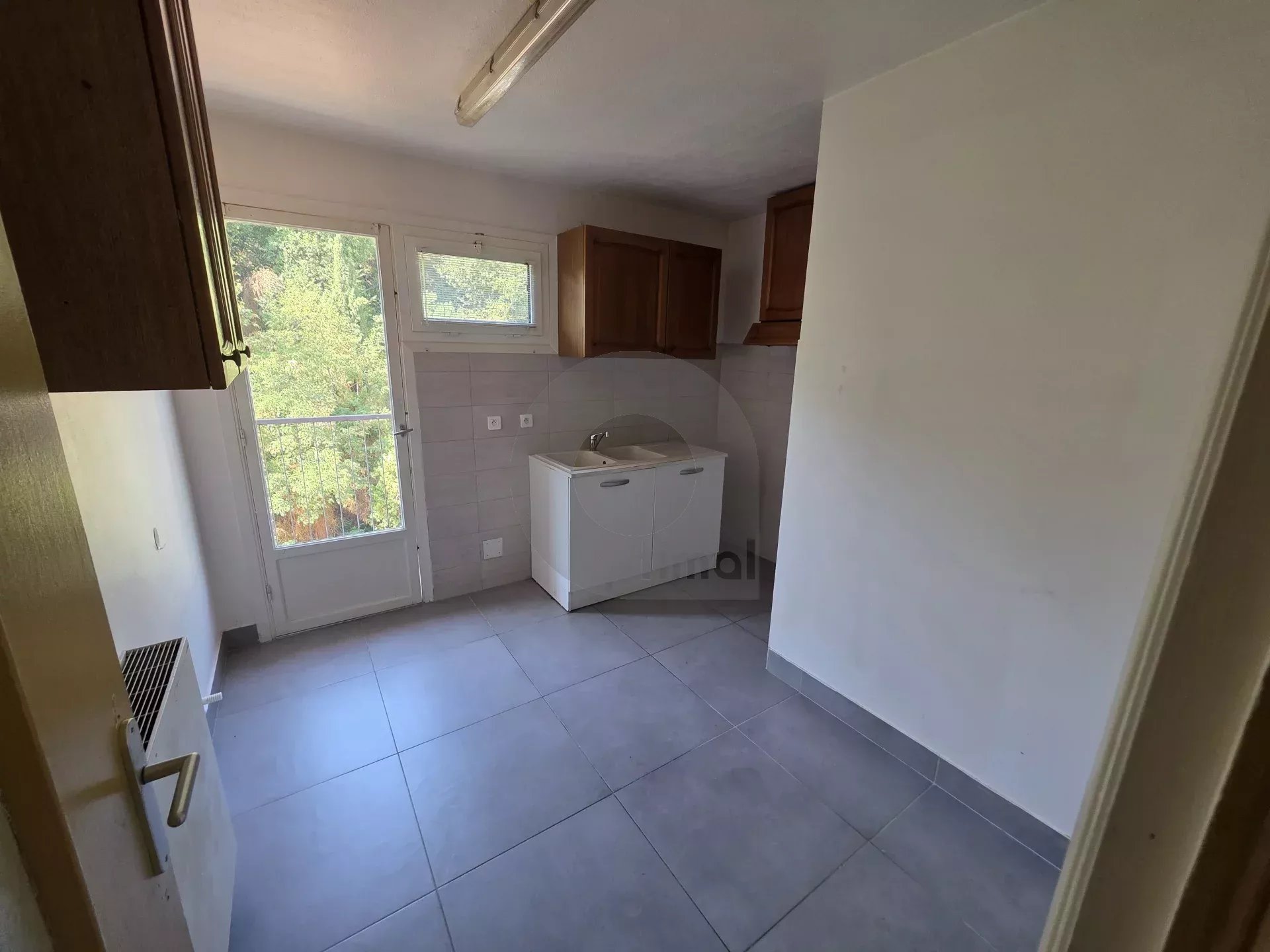 Appartement de deux pièces à vendre au dernier étage avec cave, balcon, et grande terrasse de 19,58 m². Ce bien se situe dans une copropriété avec ascenseur et interphone, charges courantes annuelles 2787 euros. Cet appartement de 44,8 m² carres se compose d'un séjour, dégagement avec placards, salle de bains avec wc, une chambre, une cuisine, un balcon, une terrasse, une cave. Ce bien se trouve sur la commune de Menton dans le quartier du haut Borrigo. Idéal pour un premier achat en résidence principale.