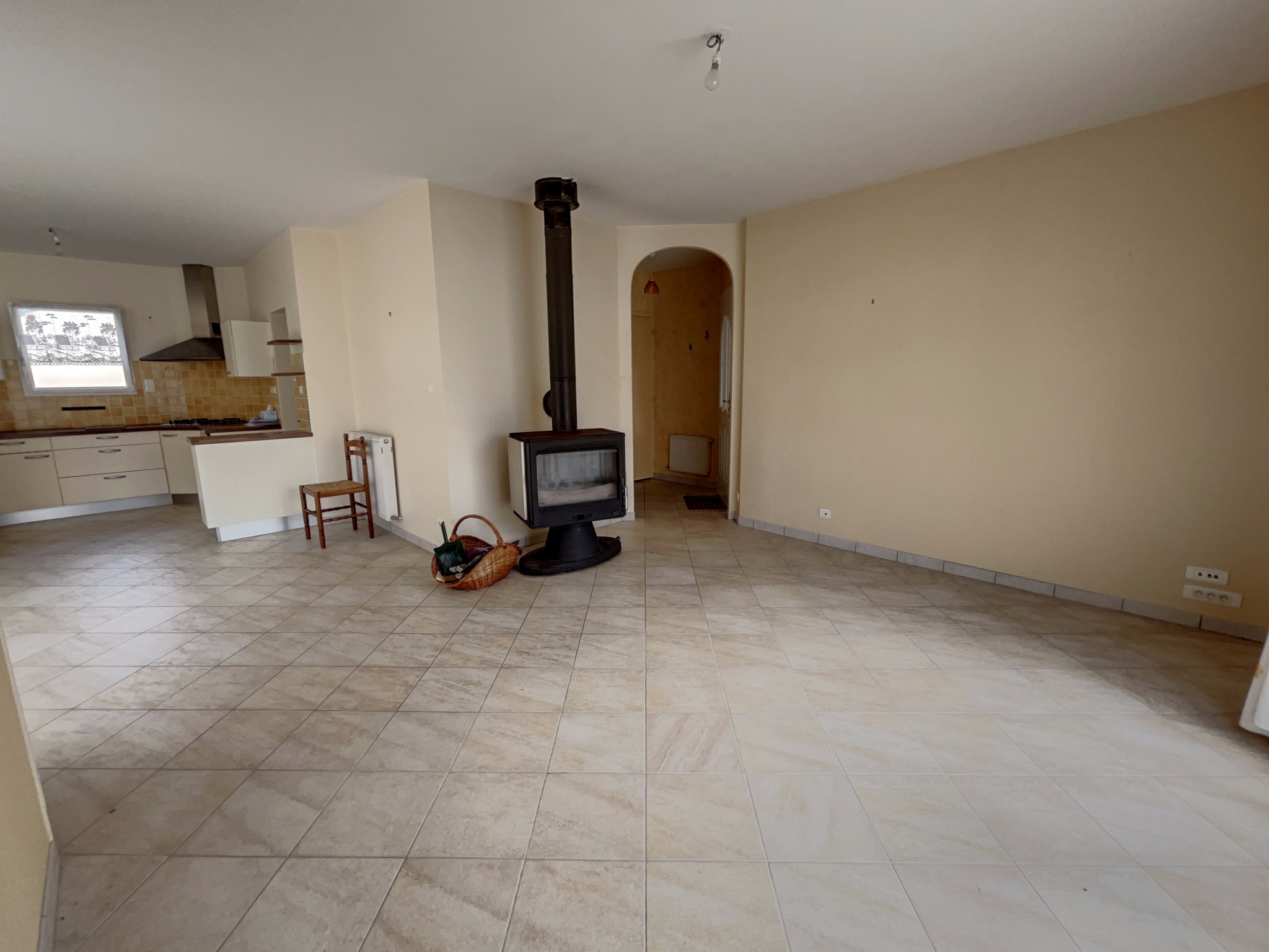 Elle se compose d'une entrée desservant une agréable pièce de vie avec salle à manger et salon équipé d'un poêle à bois, une cuisine aménagée et équipée, un cellier/buanderie, trois chambres, un bureau, deux WC ainsi qu'une salle de bains avec douche et baignoire.